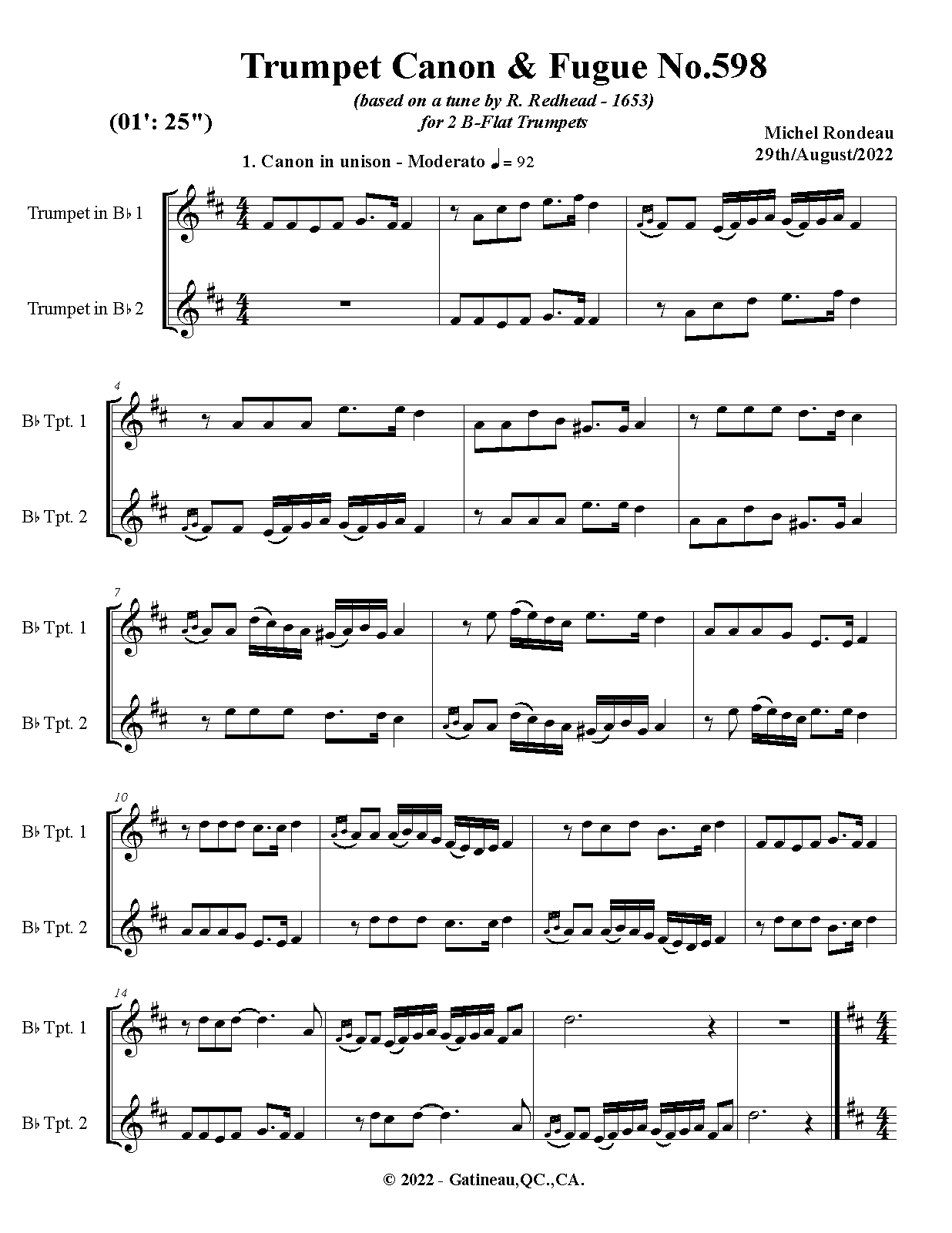 Trumpet Canon & Fugue No.598 (Rondeau, Michel)