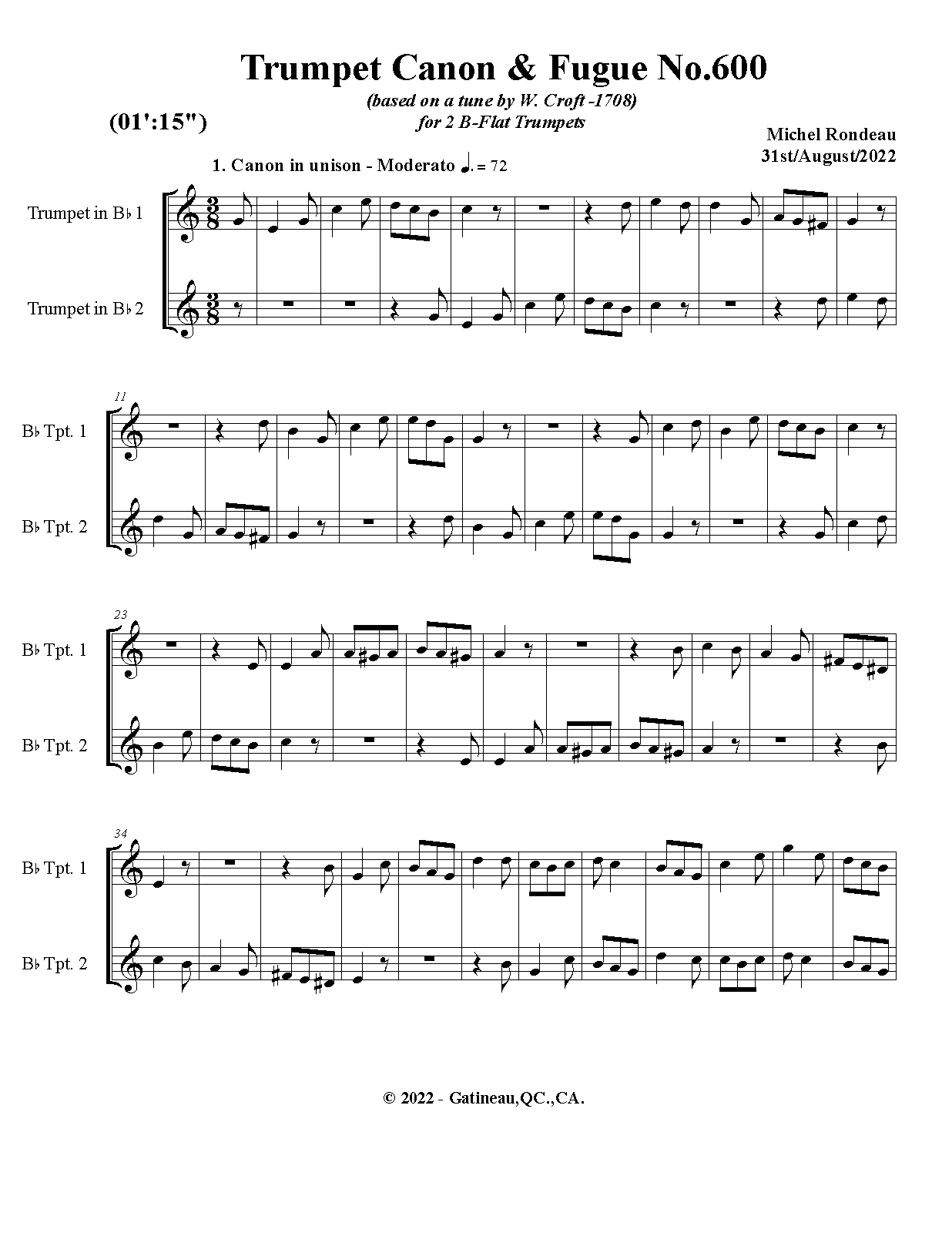 Trumpet Canon & Fugue No.600 (Rondeau, Michel)