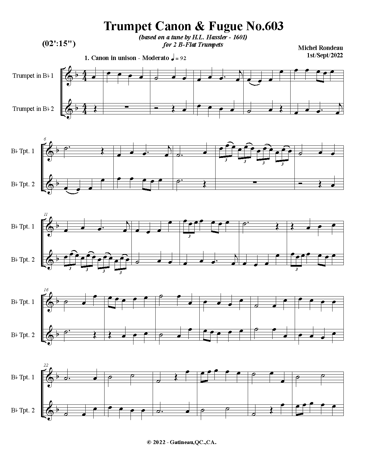 Work Title Trumpet Canon & Fugue No.603