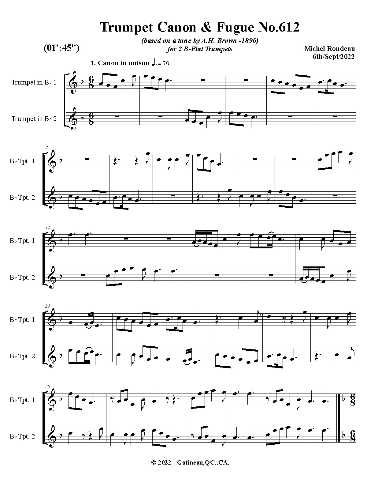 | Work Title | Trumpet Canon & Fugue No.612 |
