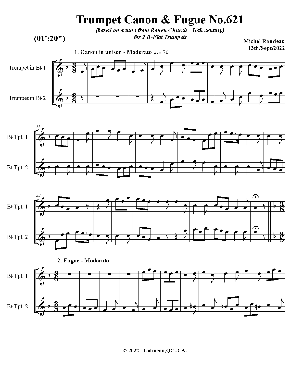 Trumpet Canon & Fugue No.621 (Rondeau, Michel)