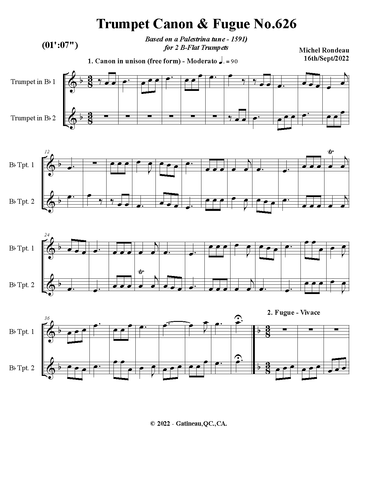 Trumpet Canon & Fugue No.626 (Rondeau, Michel)