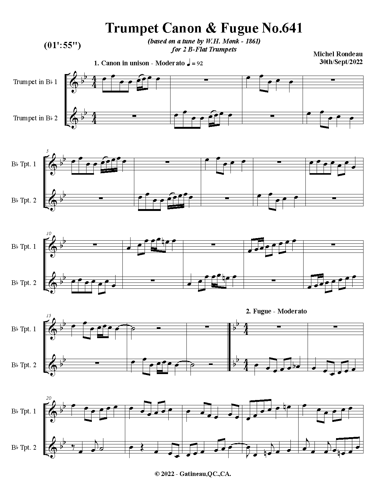 Trumpet Canon & Fugue No.641 (Rondeau, Michel)