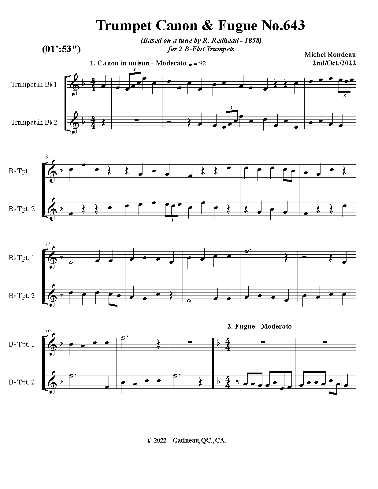 | Work Title | Trumpet Canon & Fugue No.643 |