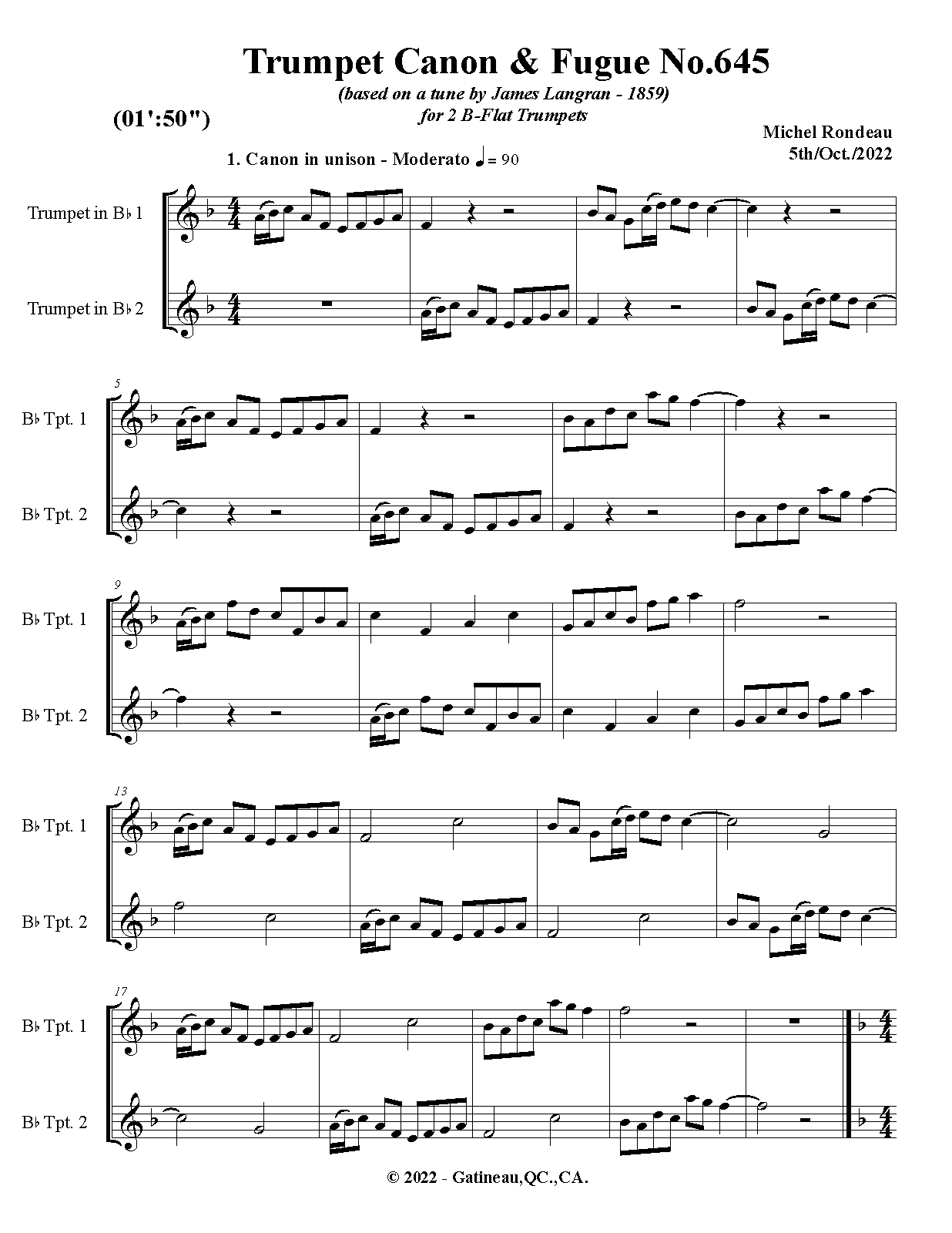| Work Title | Trumpet Canon & Fugue No.645 |