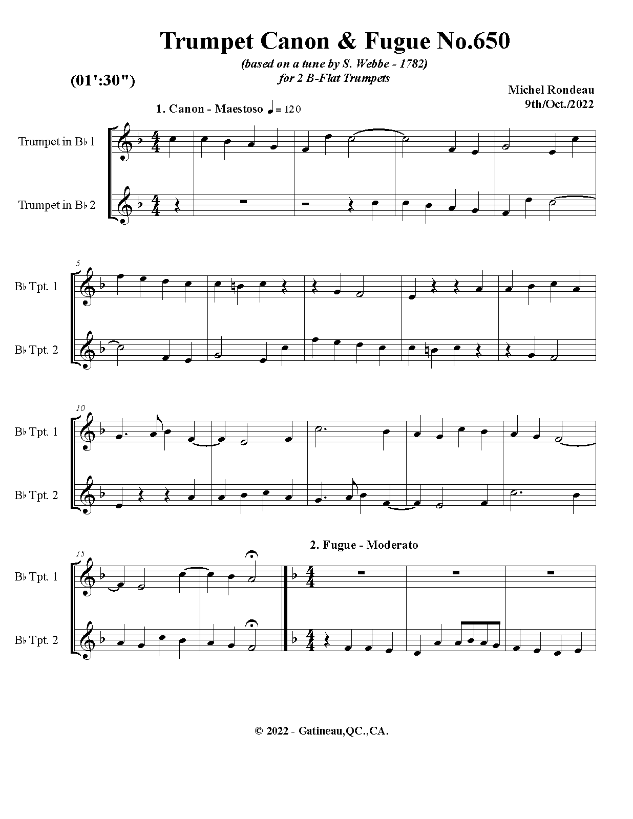 | Work Title | Trumpet Canon & Fugue No.650 |