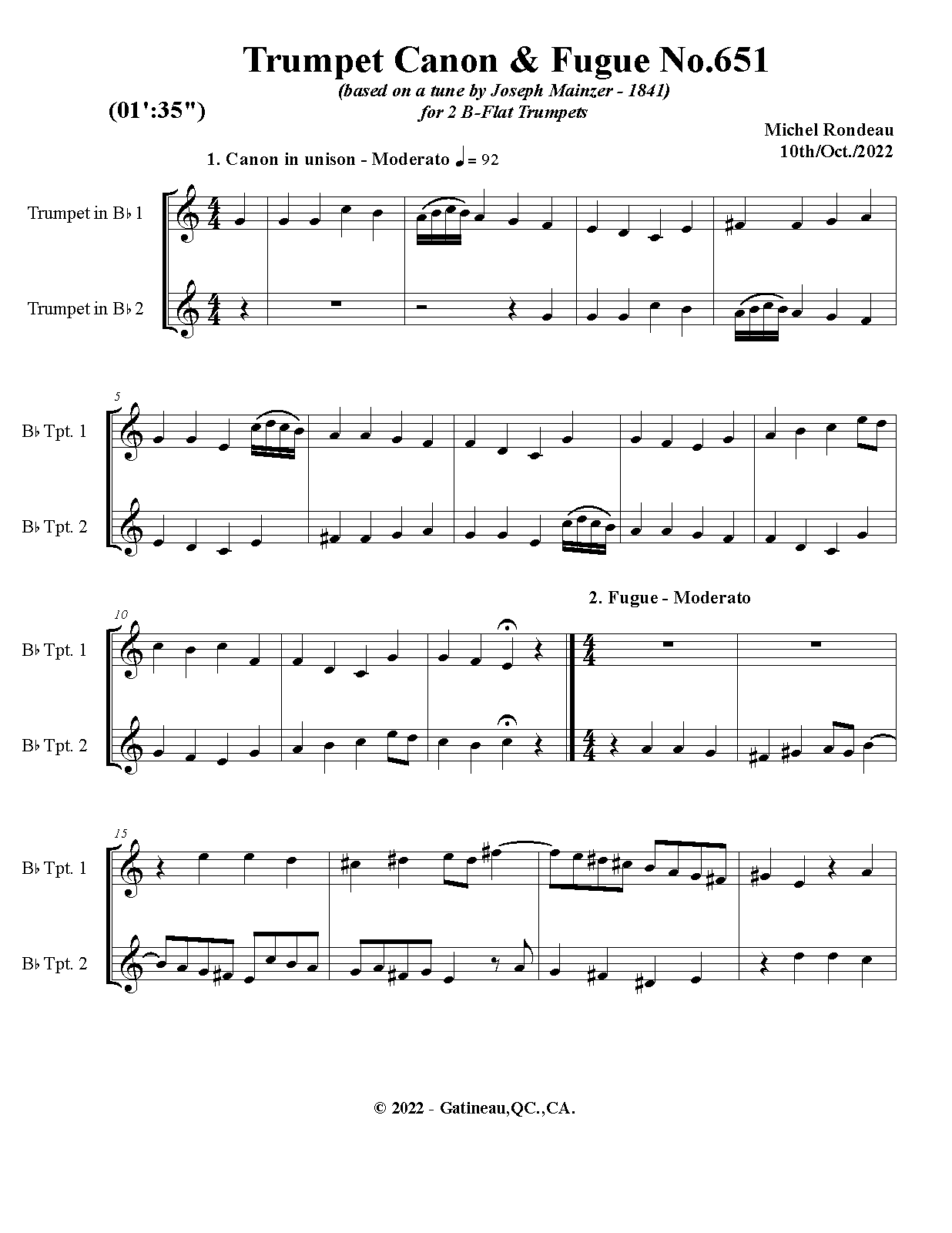 Trumpet Canon & Fugue No.651 (Rondeau, Michel)