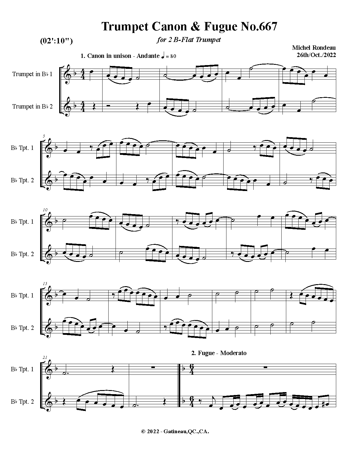 Work Title Trumpet Canon & Fugue No.667