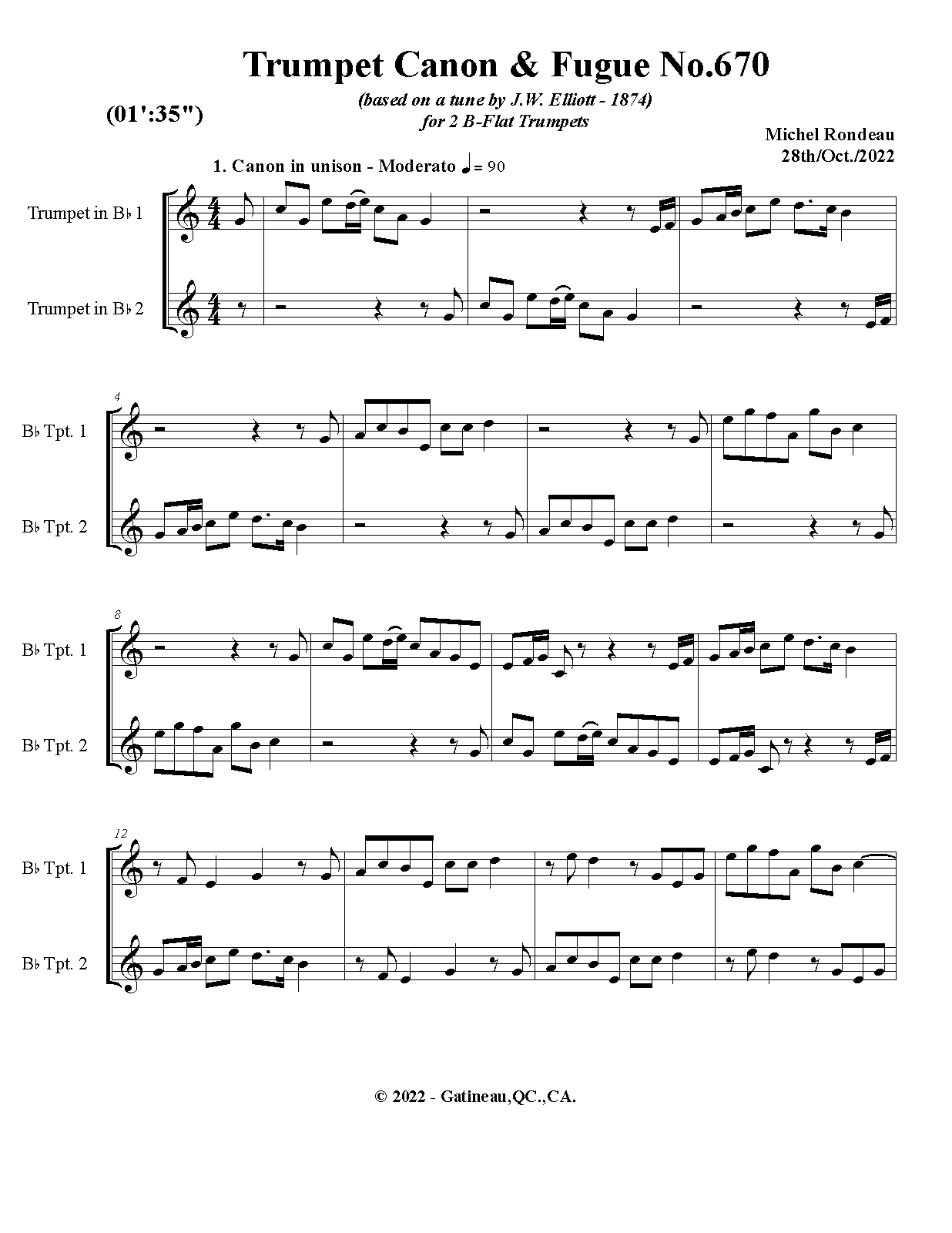 Trumpet Canon & Fugue No.670 (Rondeau, Michel)