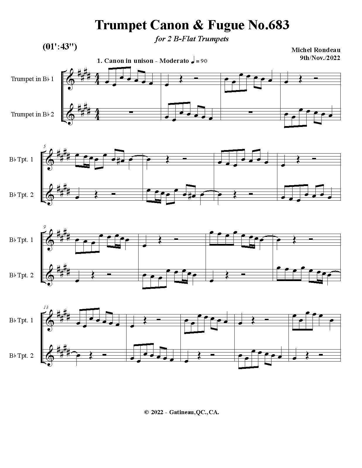 Trumpet Canon & Fugue No.683 (Rondeau, Michel)