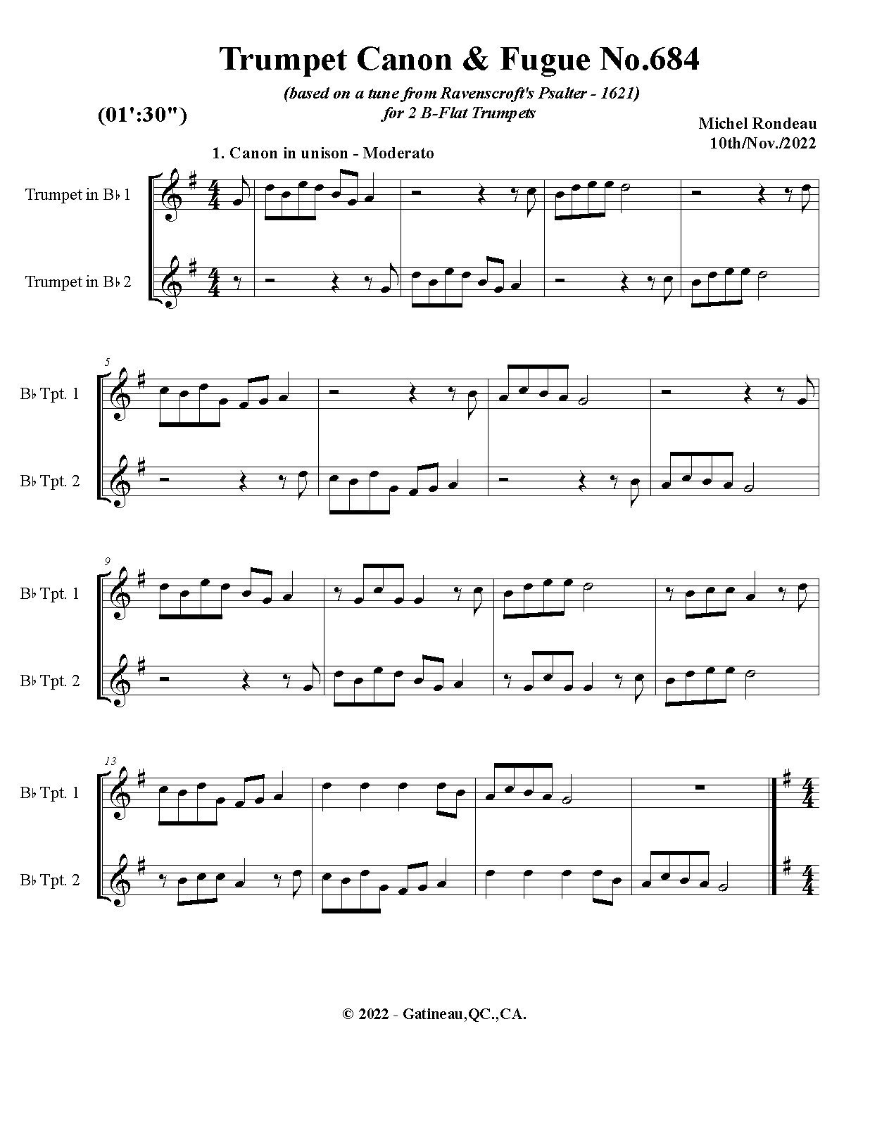 Trumpet Canon & Fugue No.684 (Rondeau, Michel)