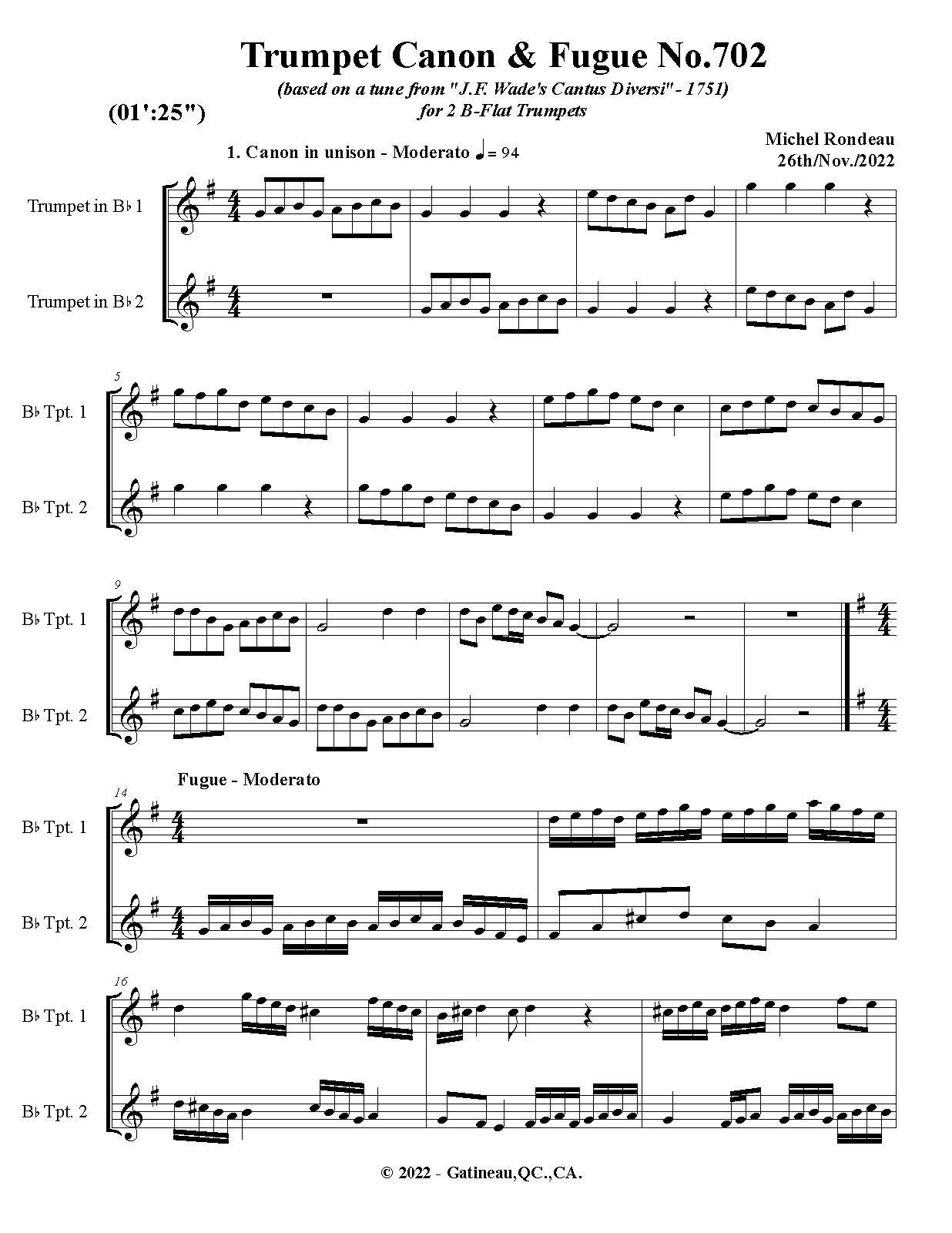 | Work Title | Trumpet Canon & Fugue No.702 |