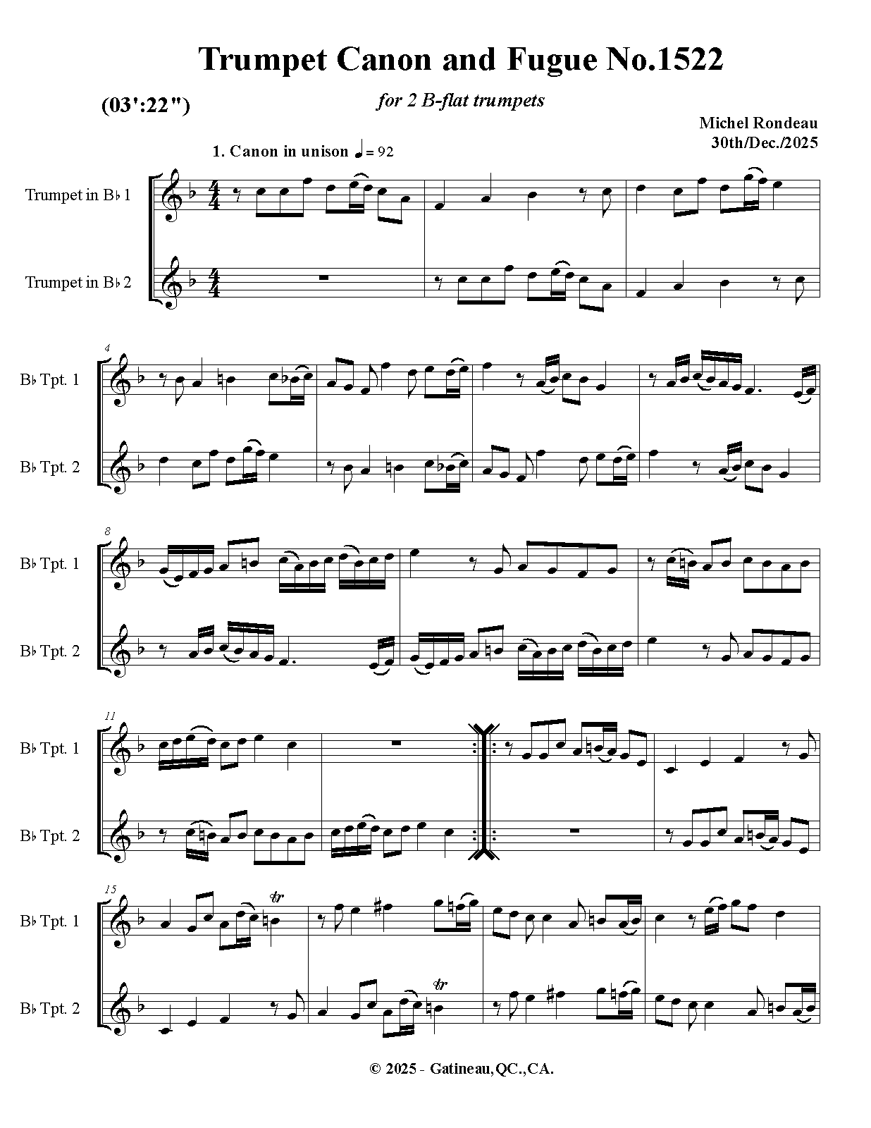 | Work Title | Trumpet Canon and Fugue No.1522 |