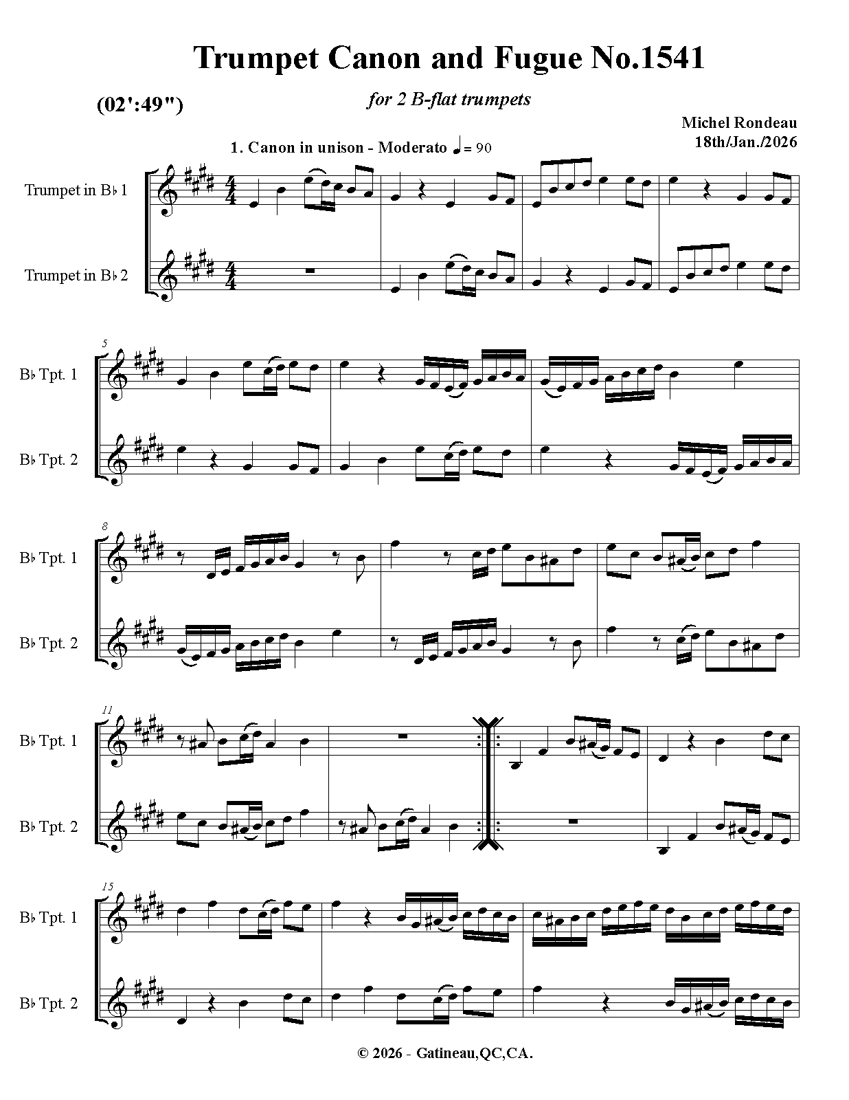 | Work Title | Trumpet Canon and Fugue No.1541 |