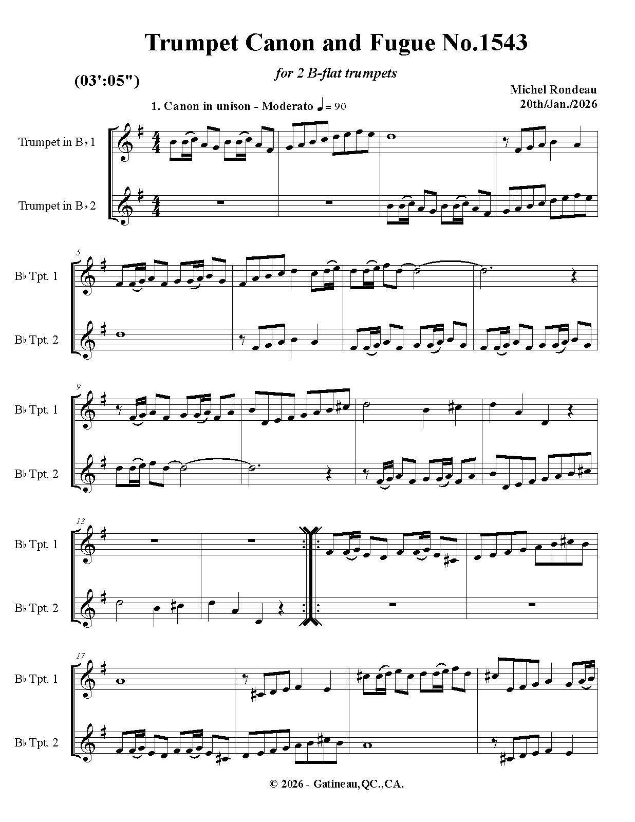 | Work Title | Trumpet Canon and Fugue No.1543 |