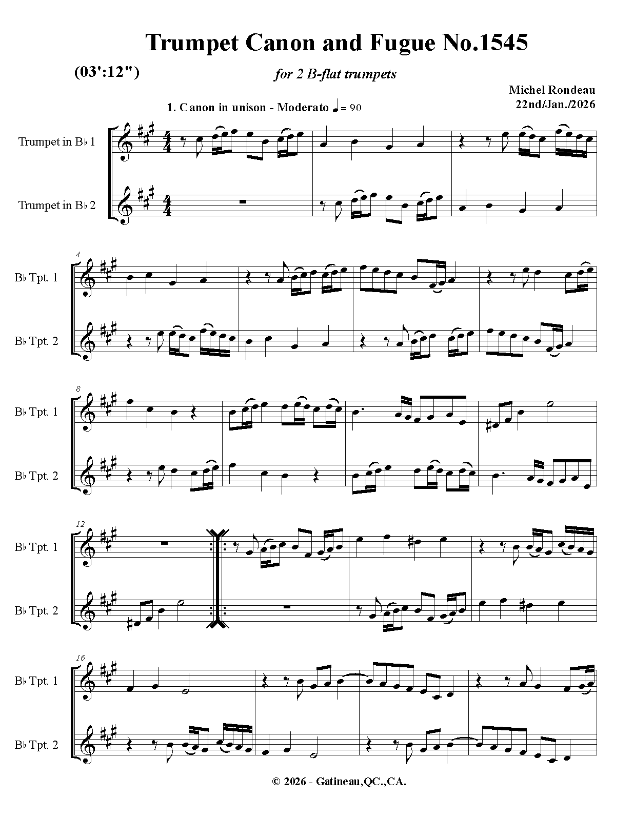 | Work Title | Trumpet Canon and Fugue No.1545 |