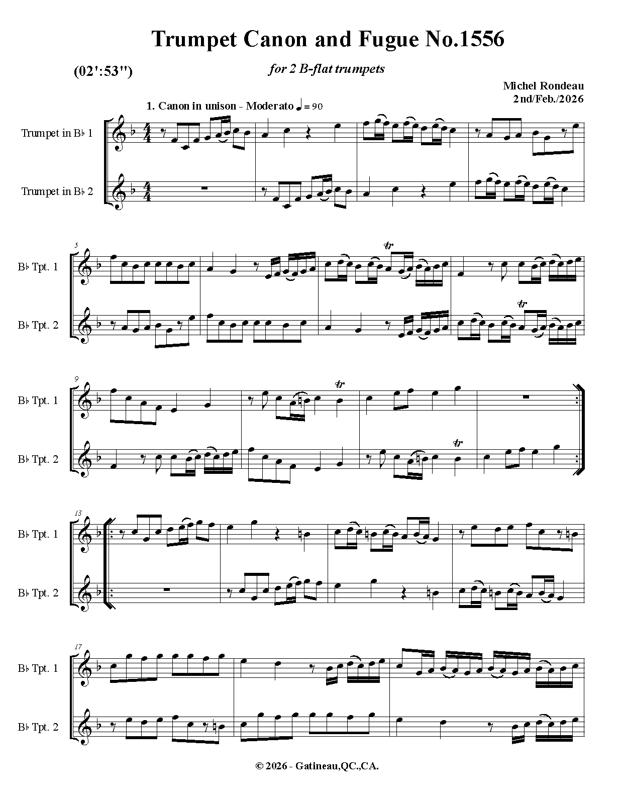 | Work Title | Trumpet Canon and Fugue No.1556 |