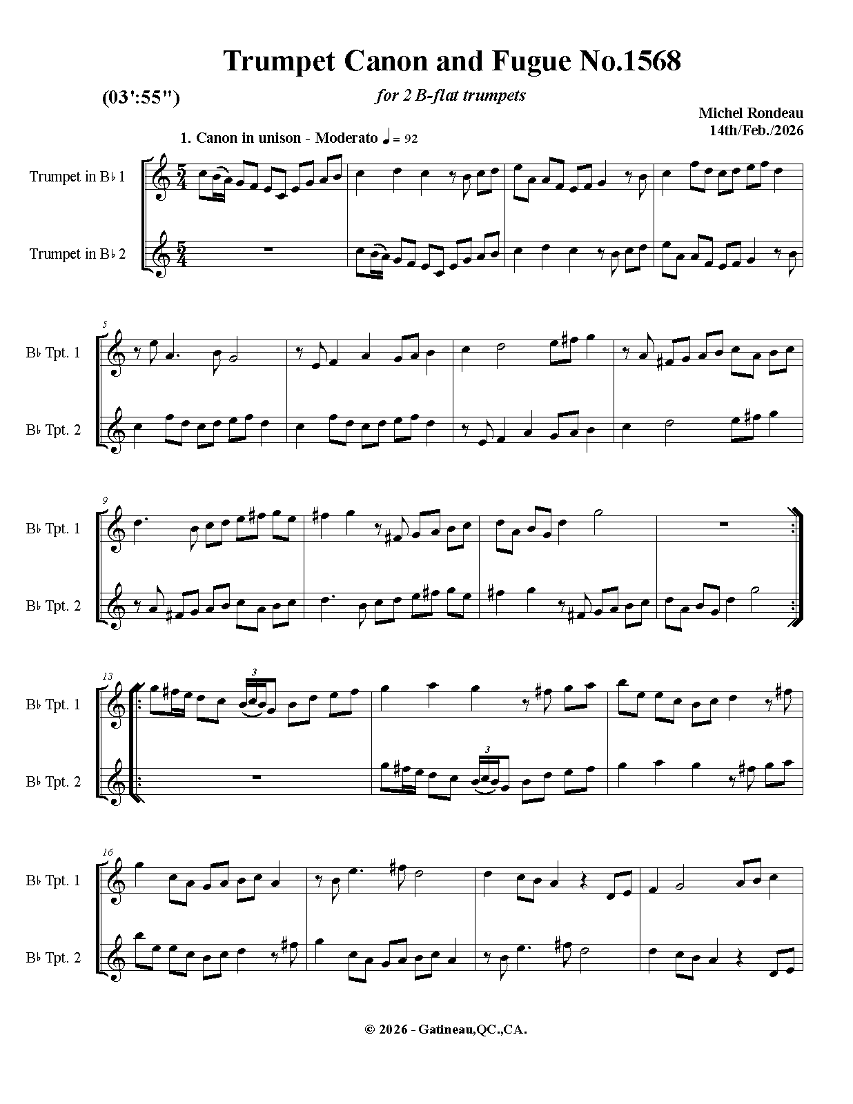 | Work Title | Trumpet Canon and Fugue No.1568 |