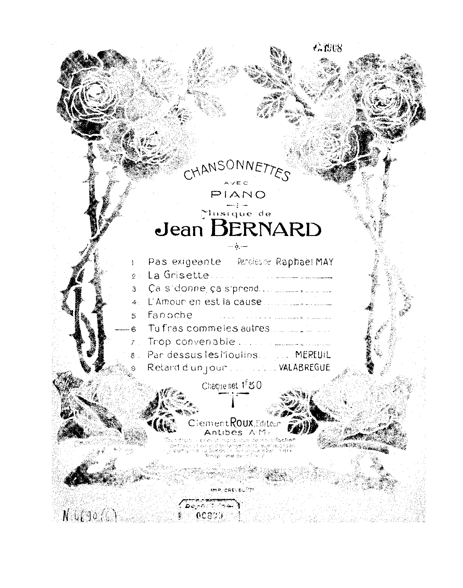 | Genre Categories | Chansons; Songs; For voice, piano; |