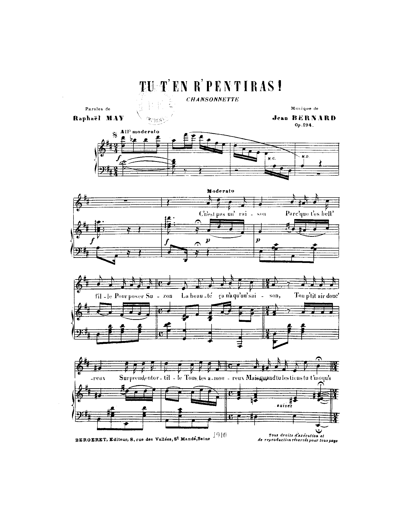 | Genre Categories | Chansons; Songs; For voice, piano; |