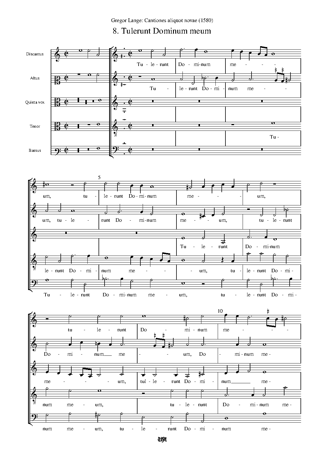 | First Publication | 1580 in Cantiones aliquot novae (No.8) |