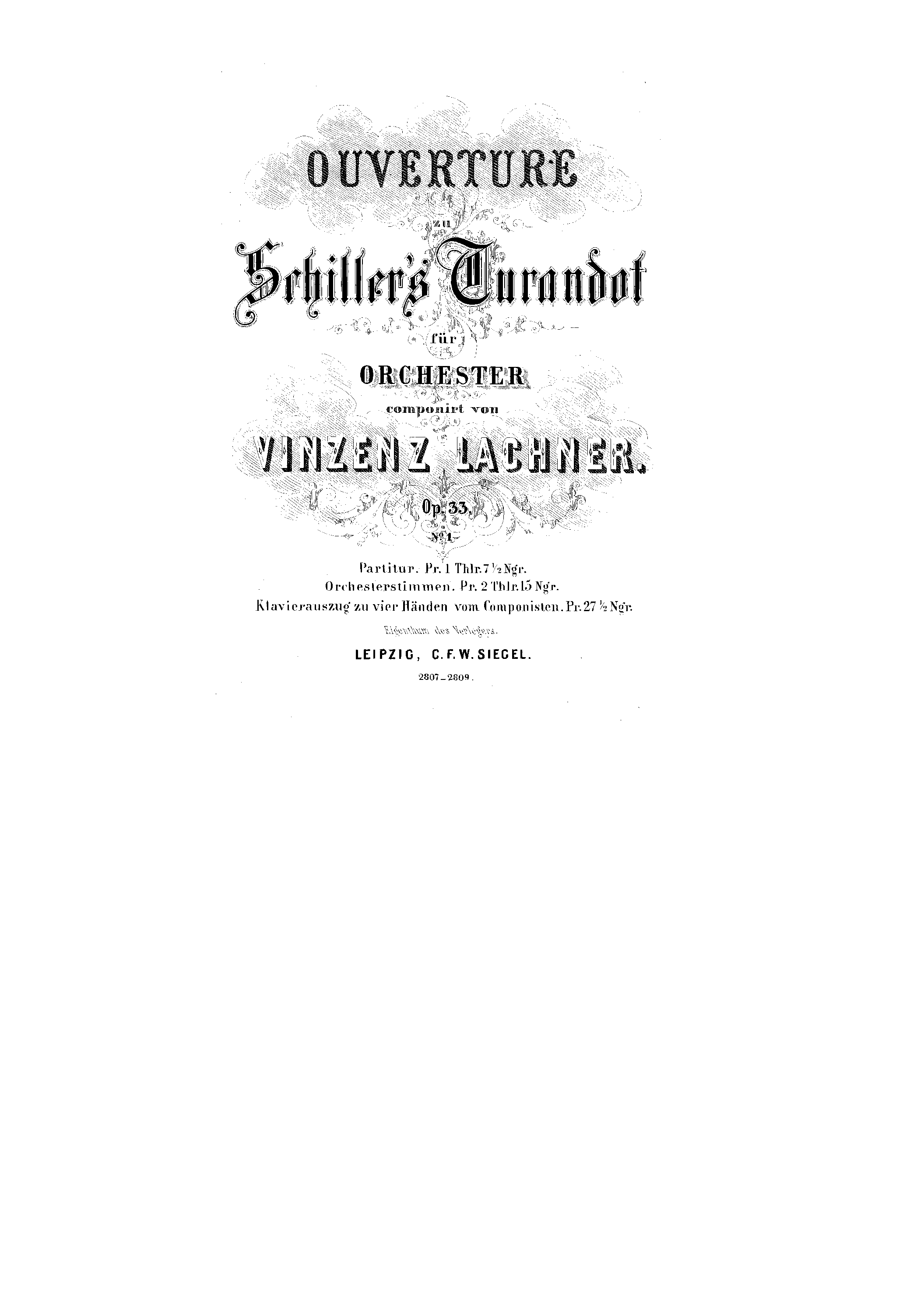 | First Publication | 1860 – Mannheim: Heckel (overture arranged for piano) 1865 – Leipzig: C.F.W. Siegel (overture and march in full score) |