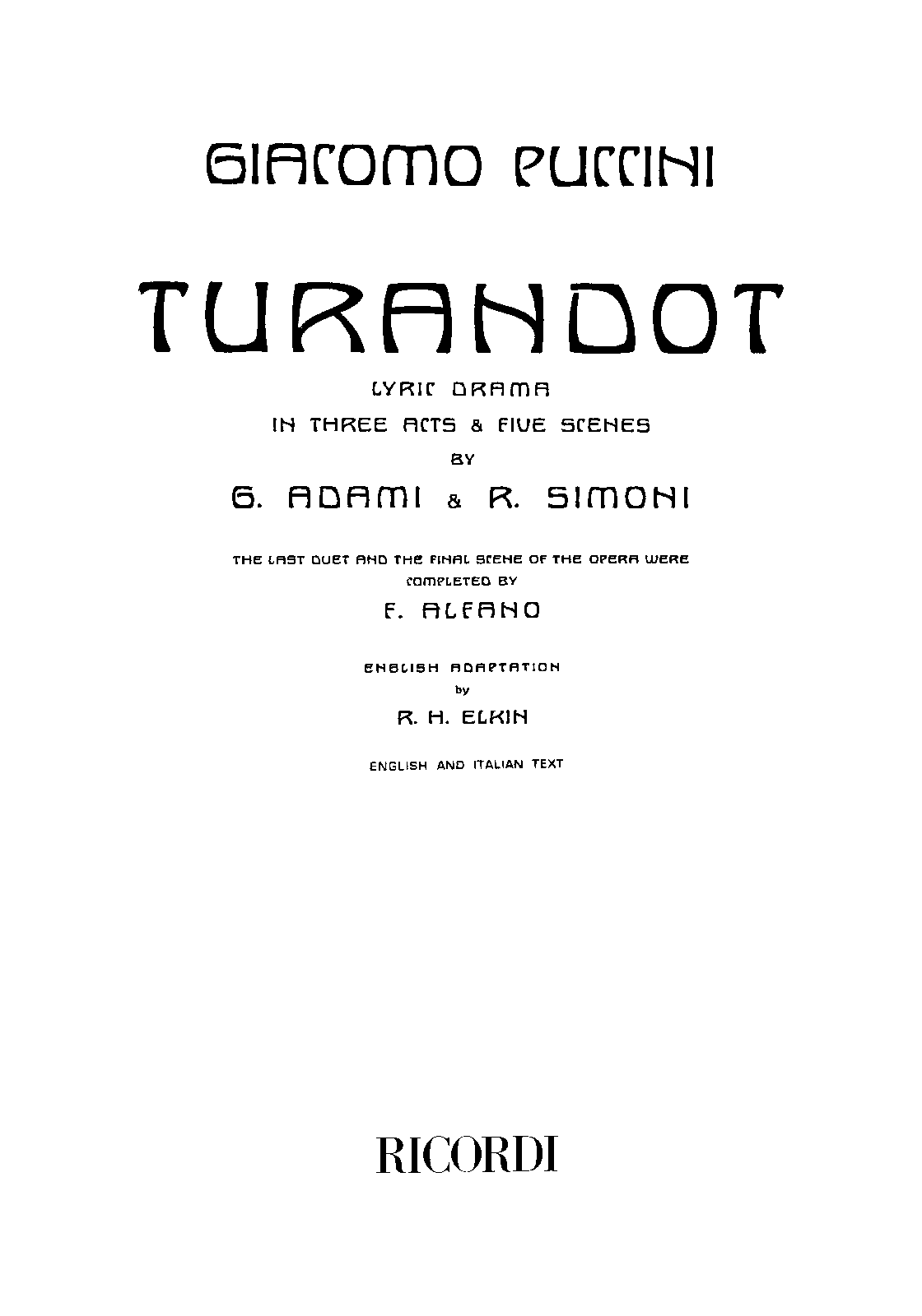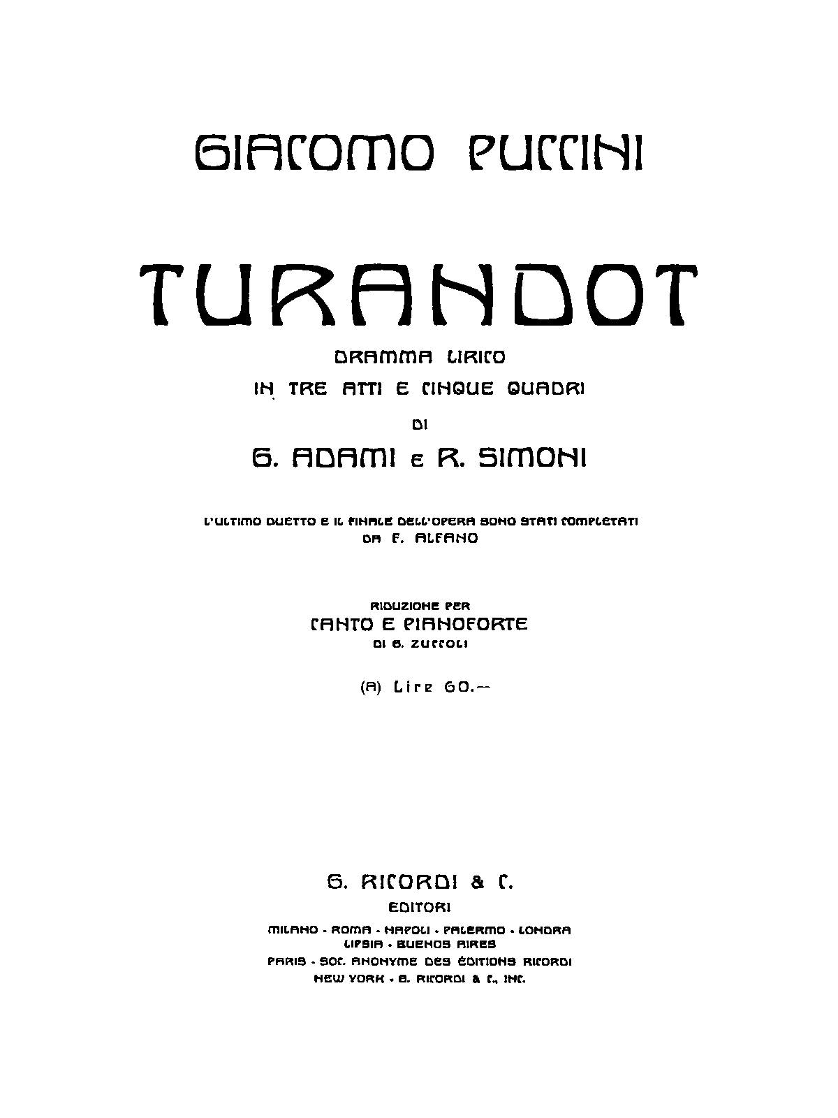 | First Publication. | 1926 - Milan: Ricordi |