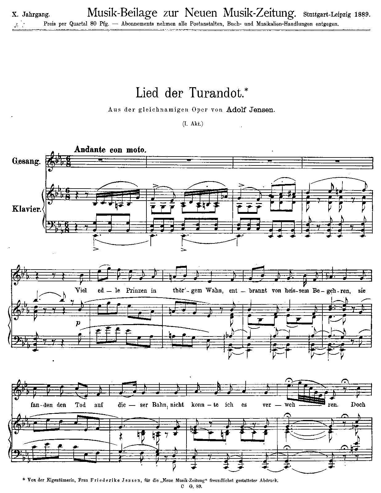 Wilhelm Kienzl published the opera after 'Die Erbin von Montfort' 10 years after Jensen's death. Manuscript on D-Mbs.