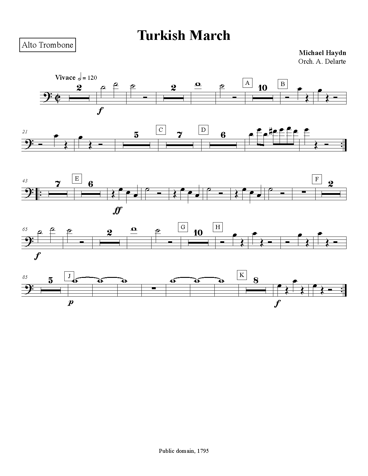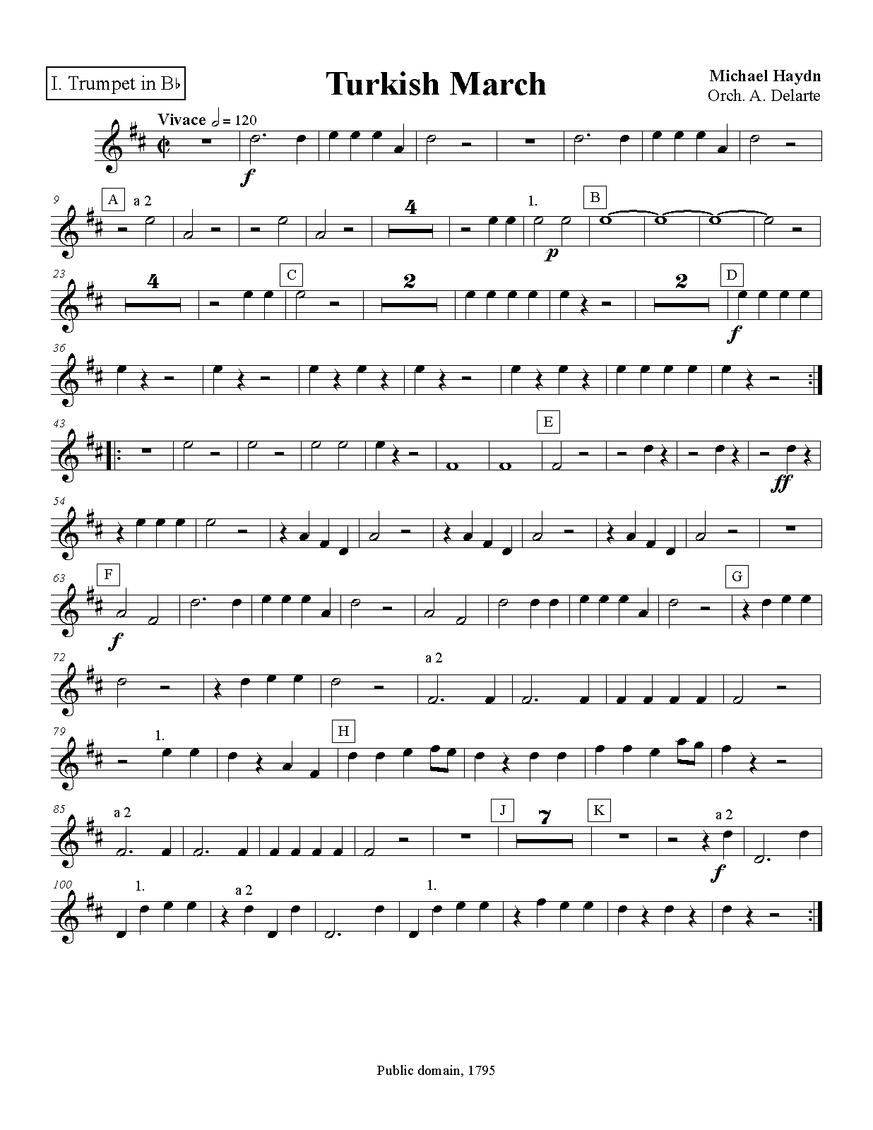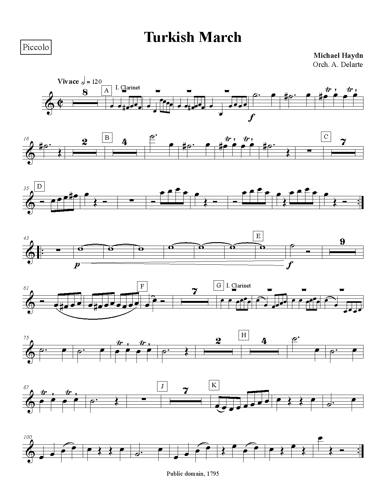 | Instrumentation | 2 flutes, 2 oboes, 2 clarinets, 2 bassoons, 2 horns, 2 trumpets, small cymbals, Turkish drums |