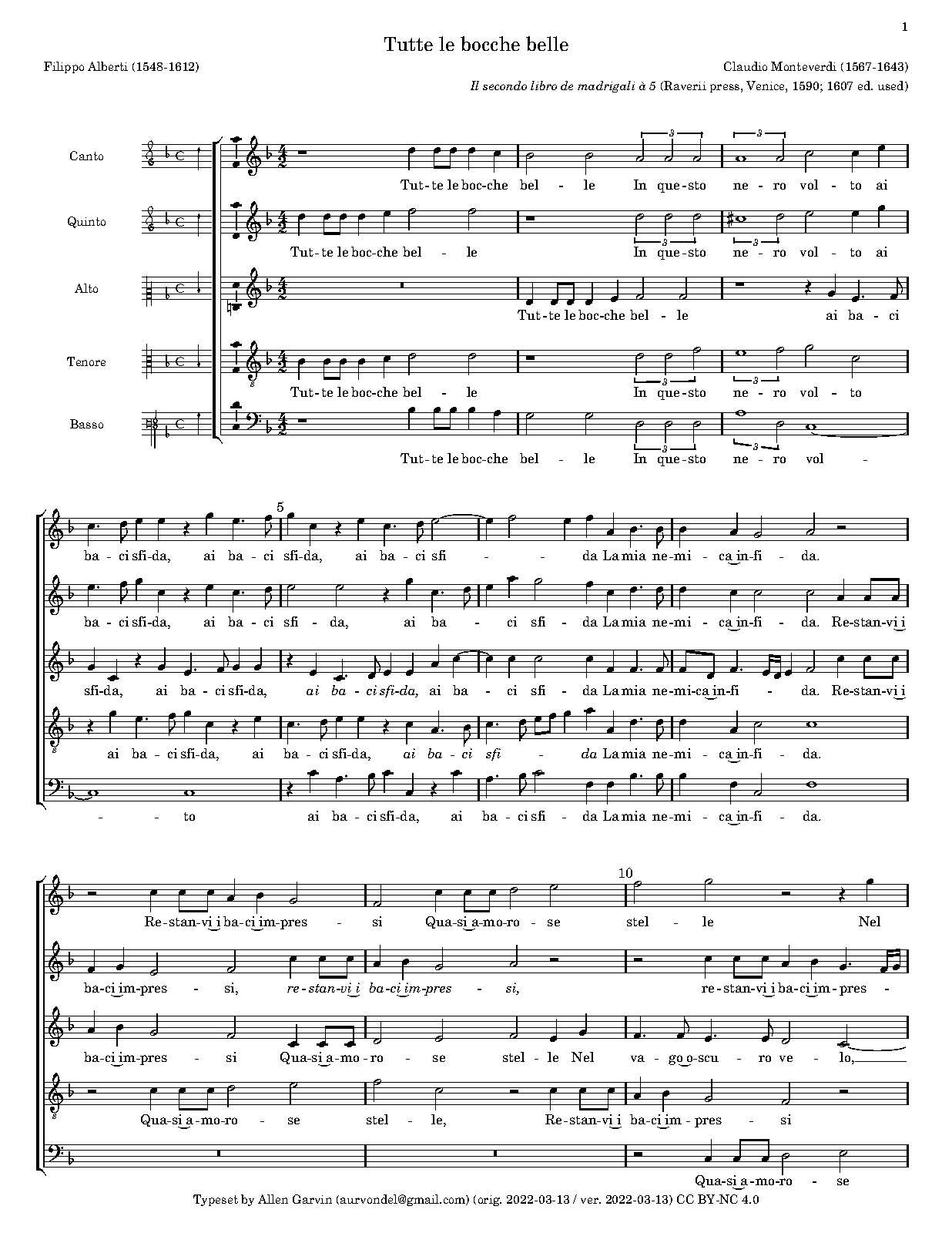 | First Publication | 1590 in Il secondo libro de madrigali à 5 (Venice: Raverii press) |