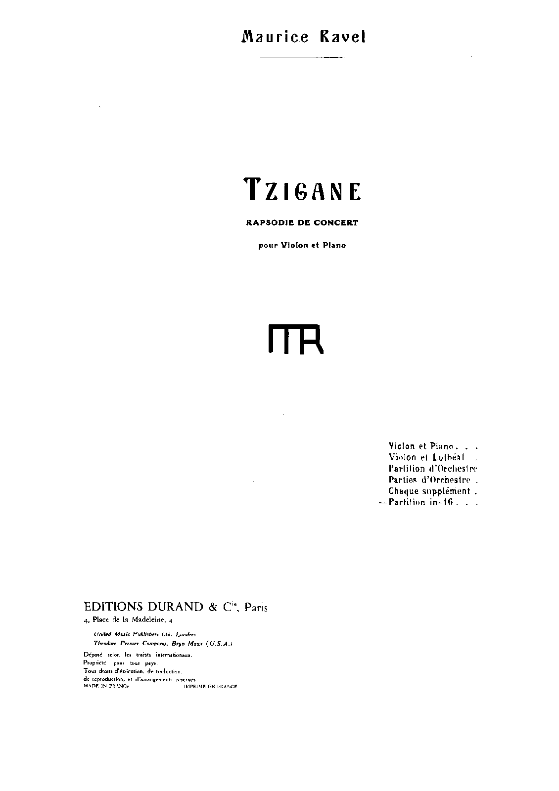 | Genre Categories | Rhapsodies; For violin, piano; Scores featuring the violin; |