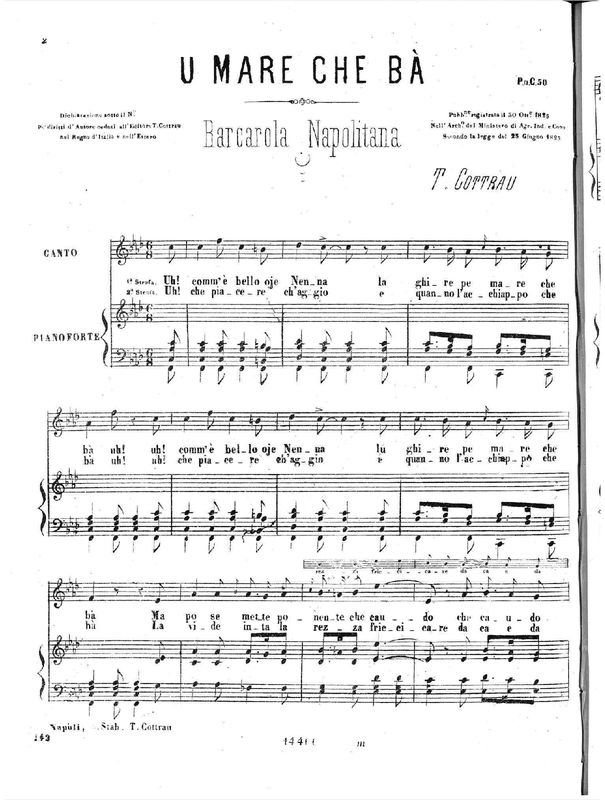 | Related Works | The song Nennella vienetè, included in the collection Eco di Napoli by Vincenzo de Meglio at No.136, has the same key and a very similar ending. Included in the collection Eco del Vesuvio (No. 95). |