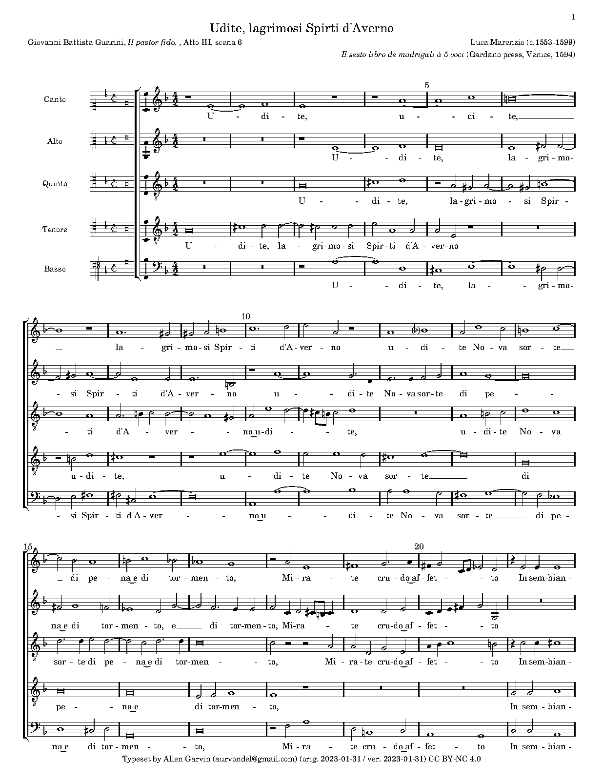 | First Publication | 1594 in Il sesto libro de madrigali a cinque voci |