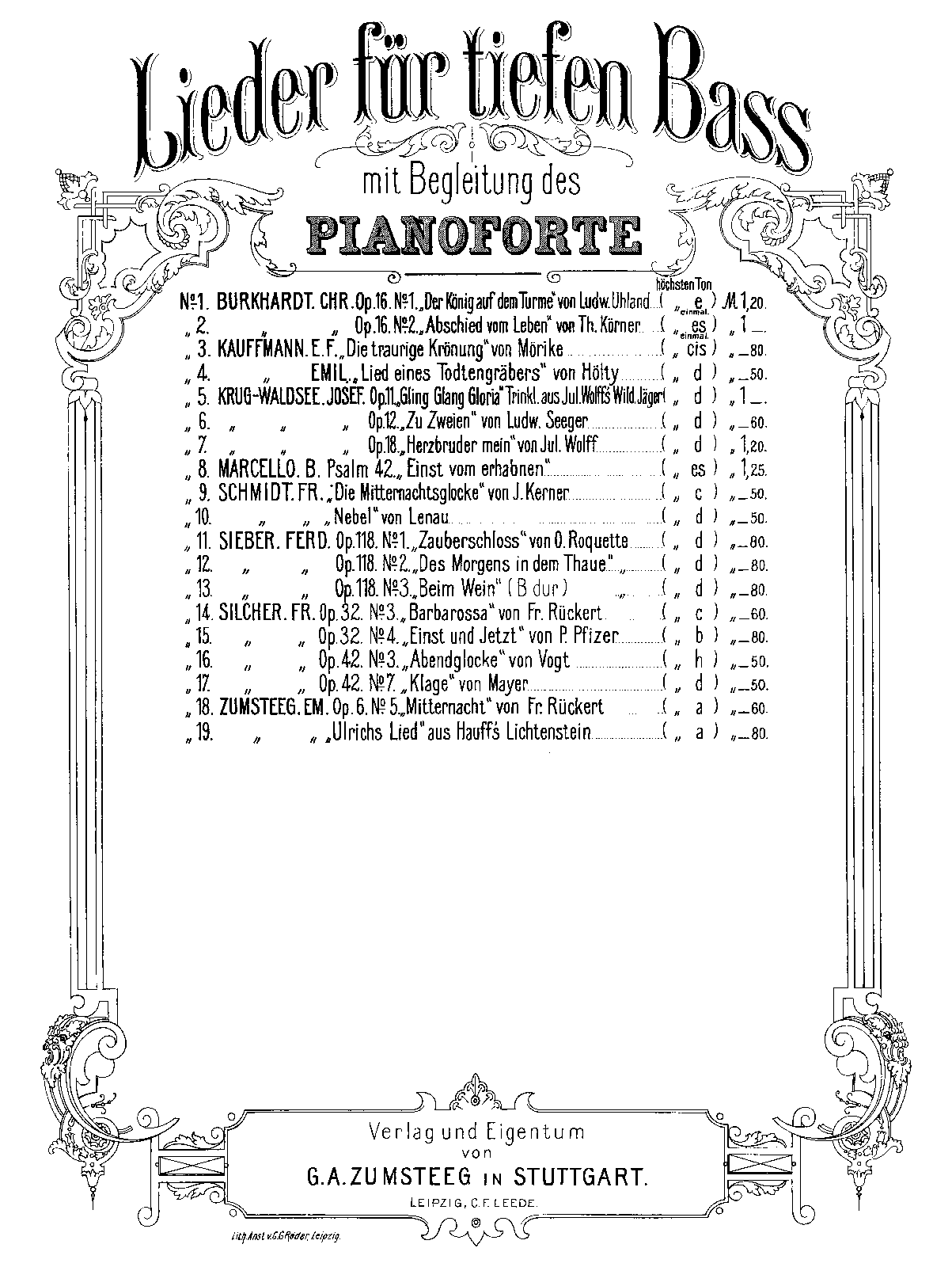 | Genre Categories | Lieder; Songs; For voice, piano; |