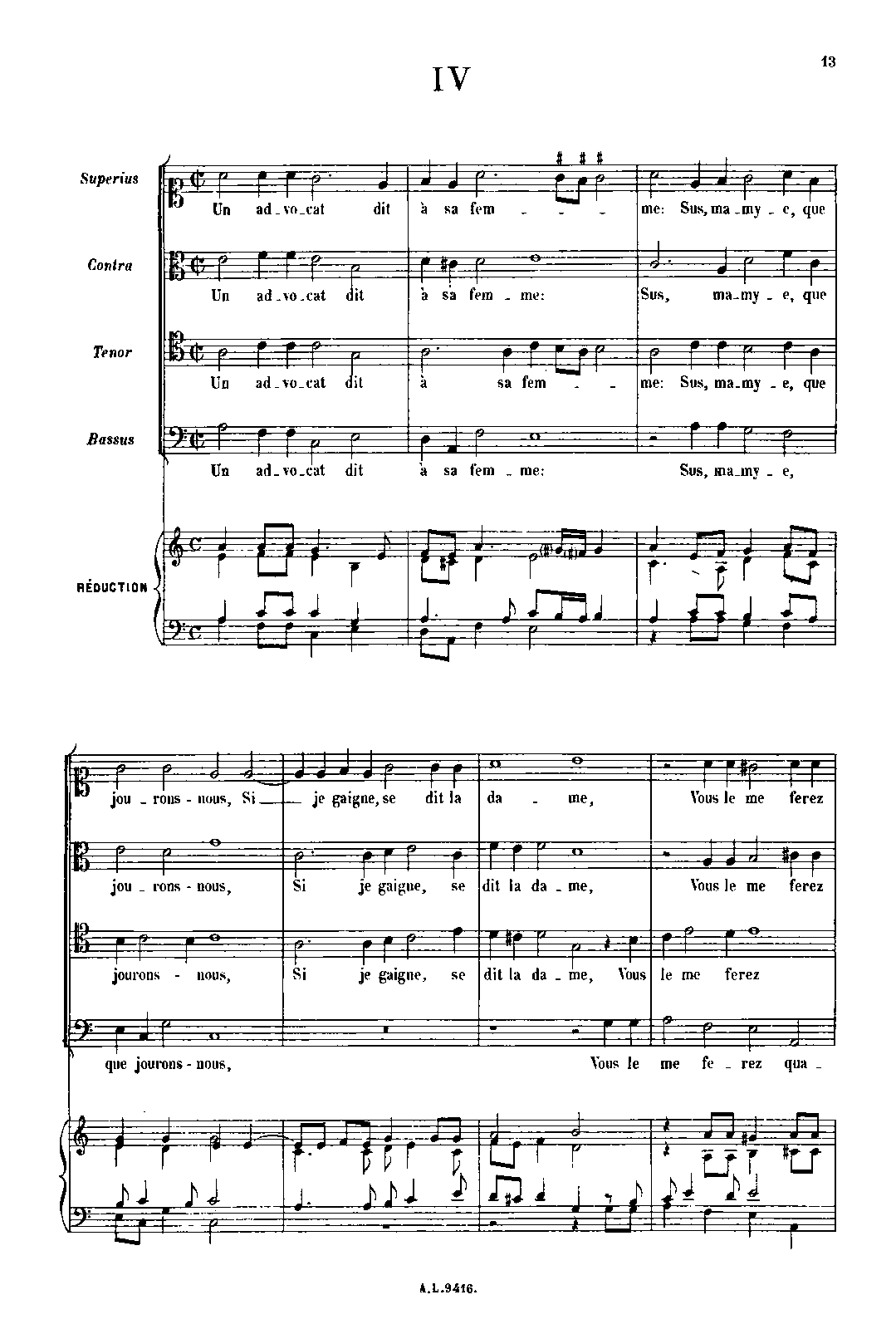 | Genre Categories | Chansons; Songs; For 4 voices; |