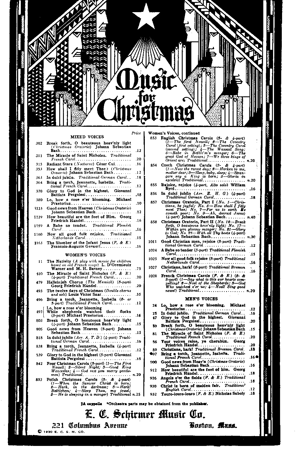 Music for Christmas, No.97 Boston: E.C. Schirmer Music Co., 1926. Plate E.C.S. No.215.