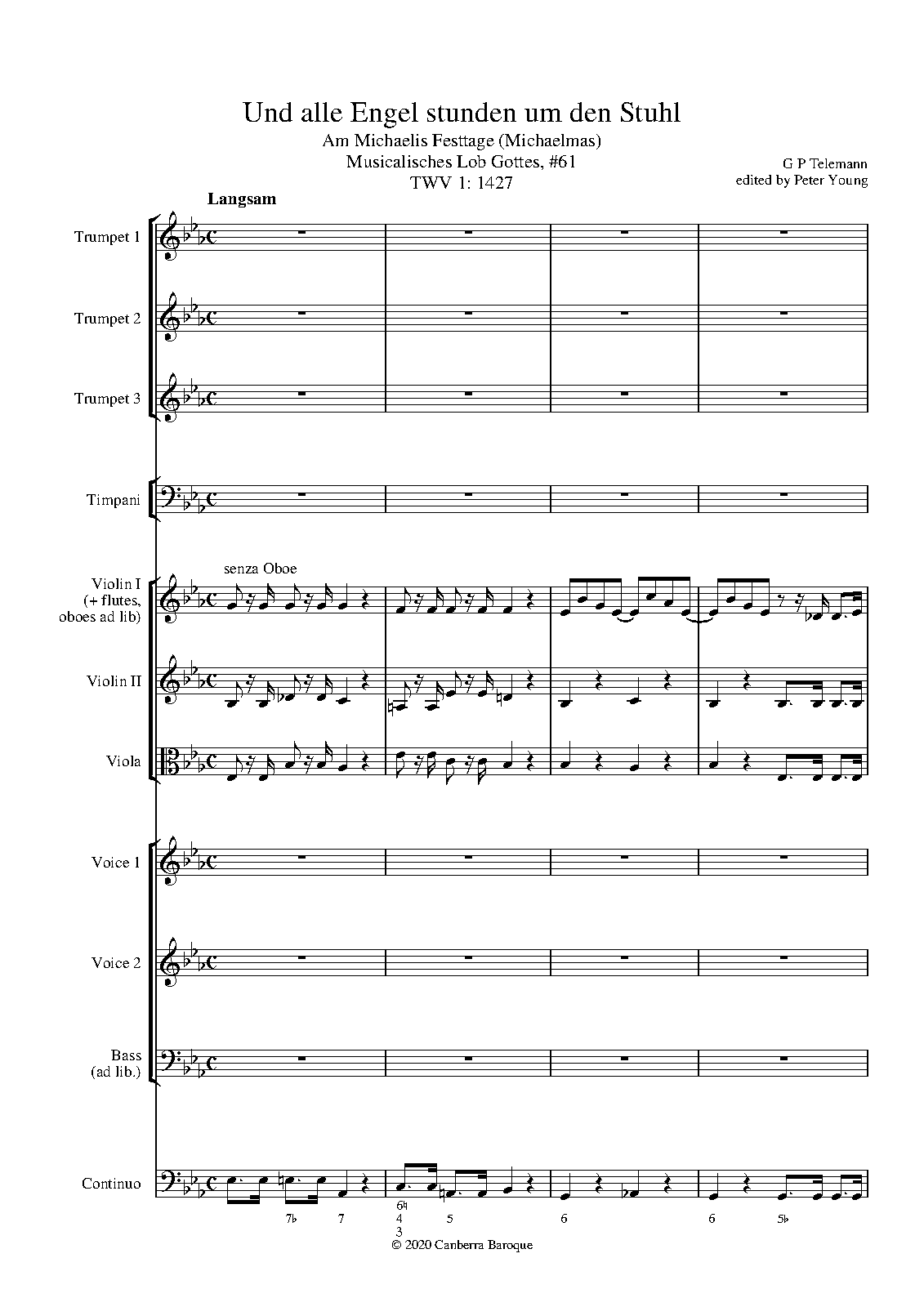 Voices: 2 voices, bass (optional) Orchestra: 3 trumpets, timpani, strings, continuo