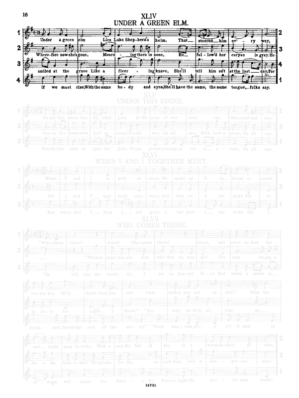 | Genre Categories | Catches; For 4 voices; For unaccompanied voices; |