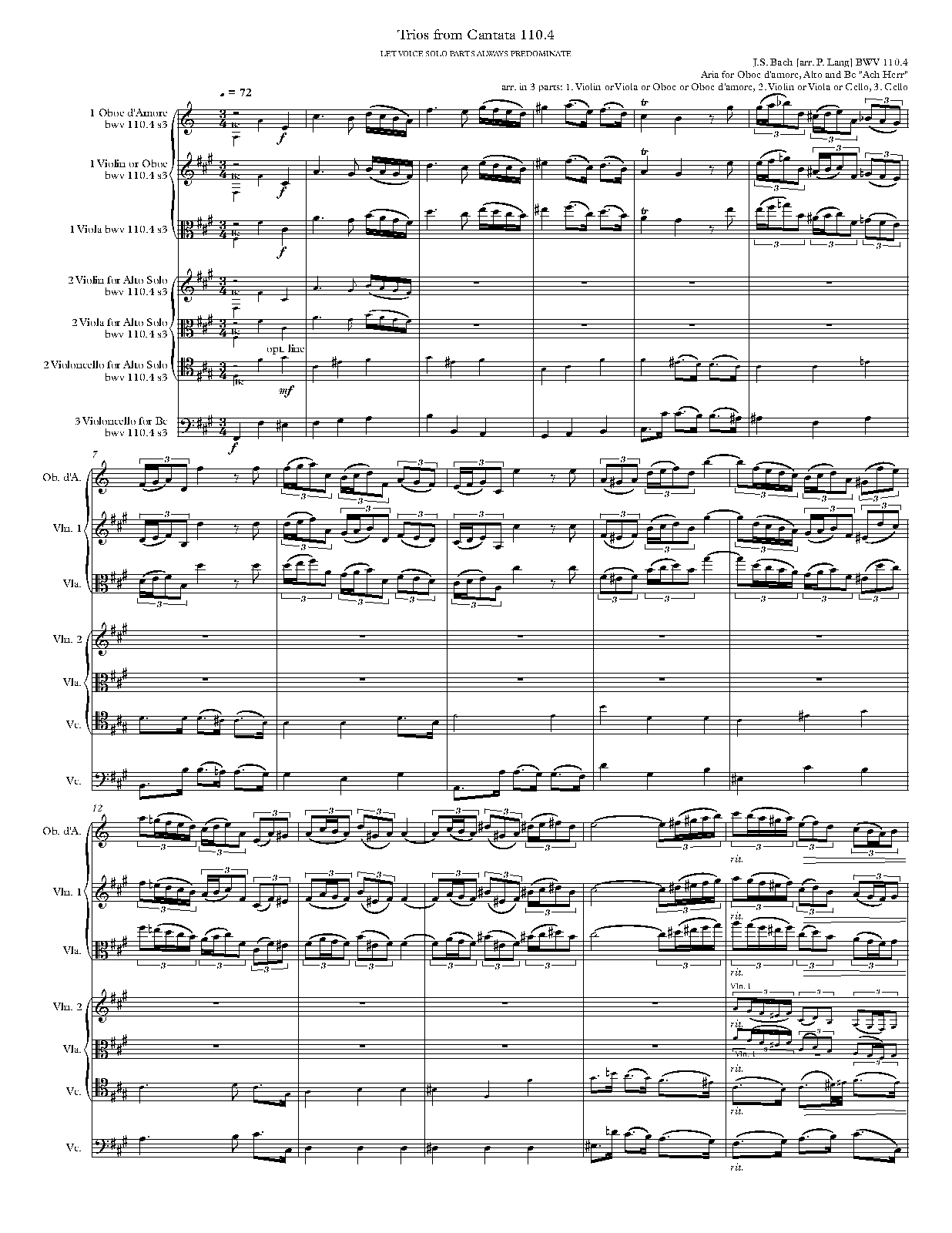 8 more: Oboe 1, 2, 3, Oboe d'amore, Oboe da caccia (or English Horn) • Bassoon • Trumpet 1 (D/C), 2, 3 (D) • Timpani • Violins I • Violins II • Violas • Cellos/Basses