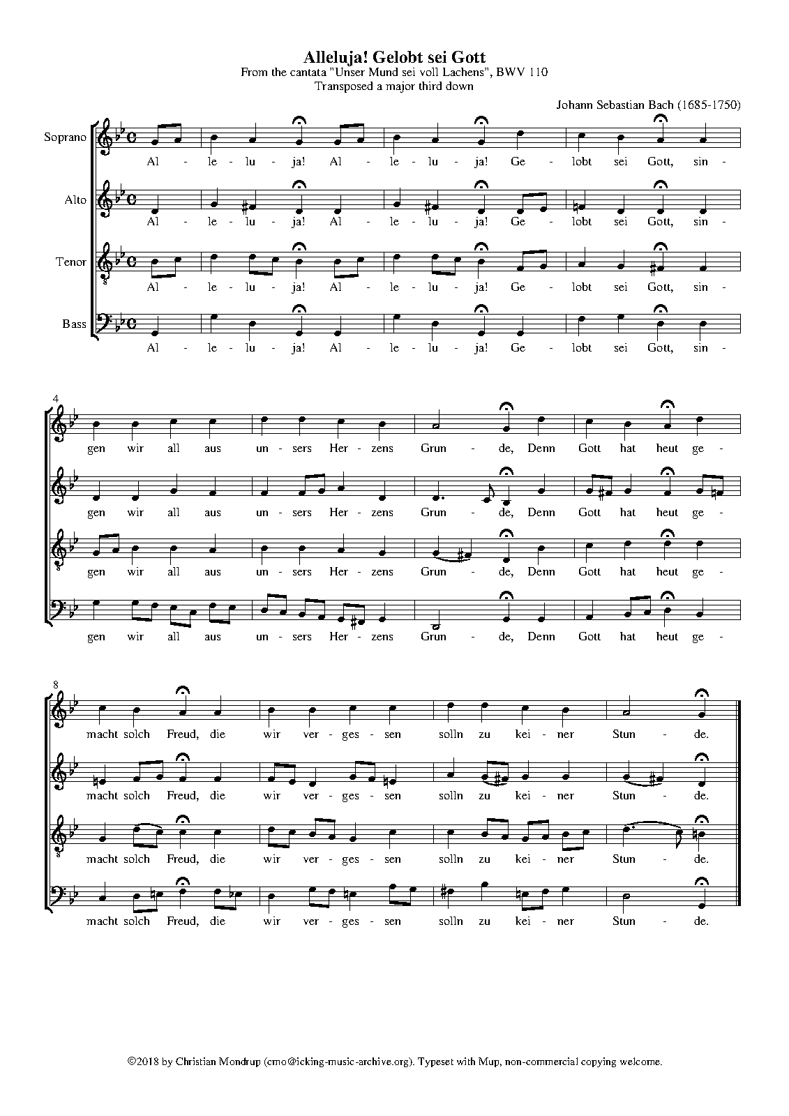 7 more: 2. Aria: 'Ihr Gedanken und ihr Sinnen' • 3. Recitativ: 'Dir, Herr, ist niemand gleich' • 4. Aria: 'Ach Herr! was ist ein Menschenkind' • 5. Duetto Aria: 'Ehre sei Gott in der Höhe' • 6. Aria: 'Wacht auf, ihr Adern und ihr Glieder' • 7. Chorale: Alleluja! Gelobt sei Gott • Engraving files (MuseScore)