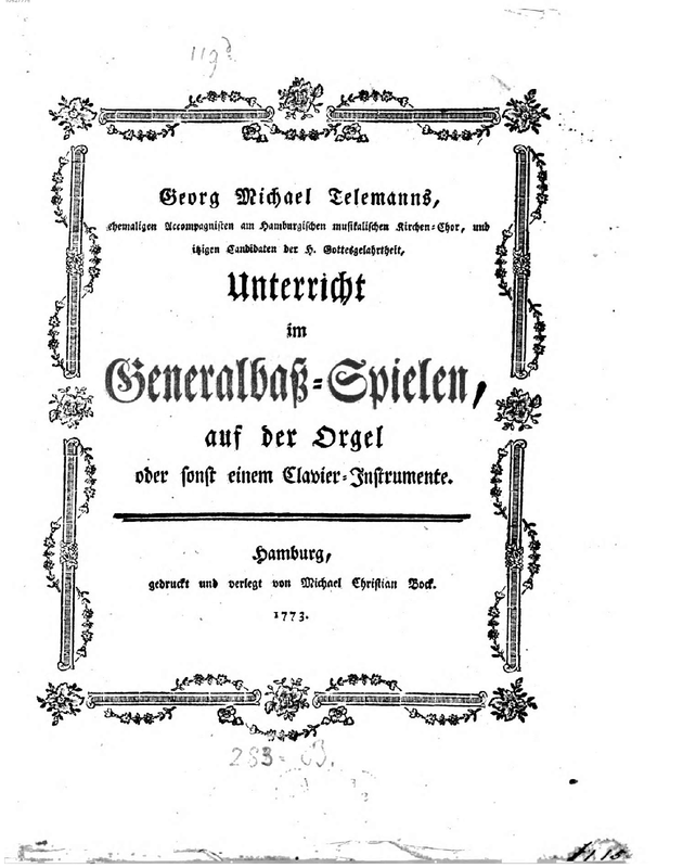 | Alternative. Title | Georg Michael Telemanns Unterricht im Generalbaß-Spielen, auf der Orgel oder sonst einem Clavier-Instrument |