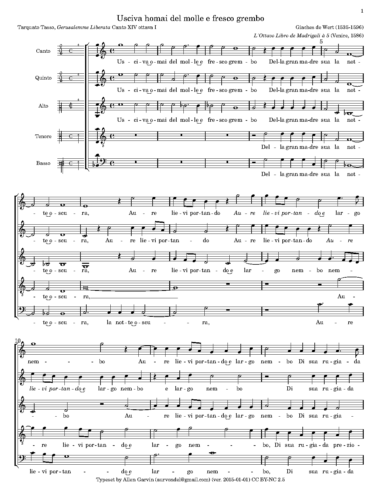| First Publication | 1586 in Madrigali a 5 voci, Libro 8 (No.6) |