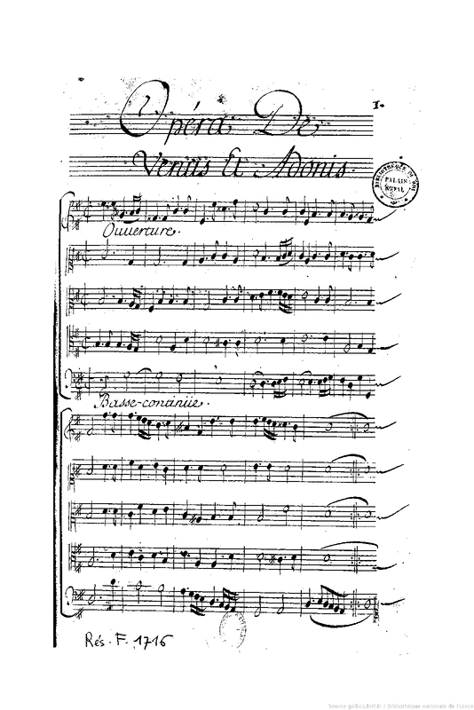 | Extra Information | Rôles : Mélicerte (Sol 2), Partenope (Ut 1), Palemon (Fa 4), une Bergère (Sol 2), Diane (Ut 1), Cidippe (Ut 1), Adonis (Ut 3), 2 Habitantes de l'île de Chypre (Sol 2 (2), un Habitant de l'île (Ut 3), la Jalousie (Fa 4), Mars (Fa 4), un Suivant de Mars (Ut 3), un Plaisir (Ut 3), une Nymphe (Sol 2), Bellone (Ut 1), un autre Habitant (Fa 4). - |