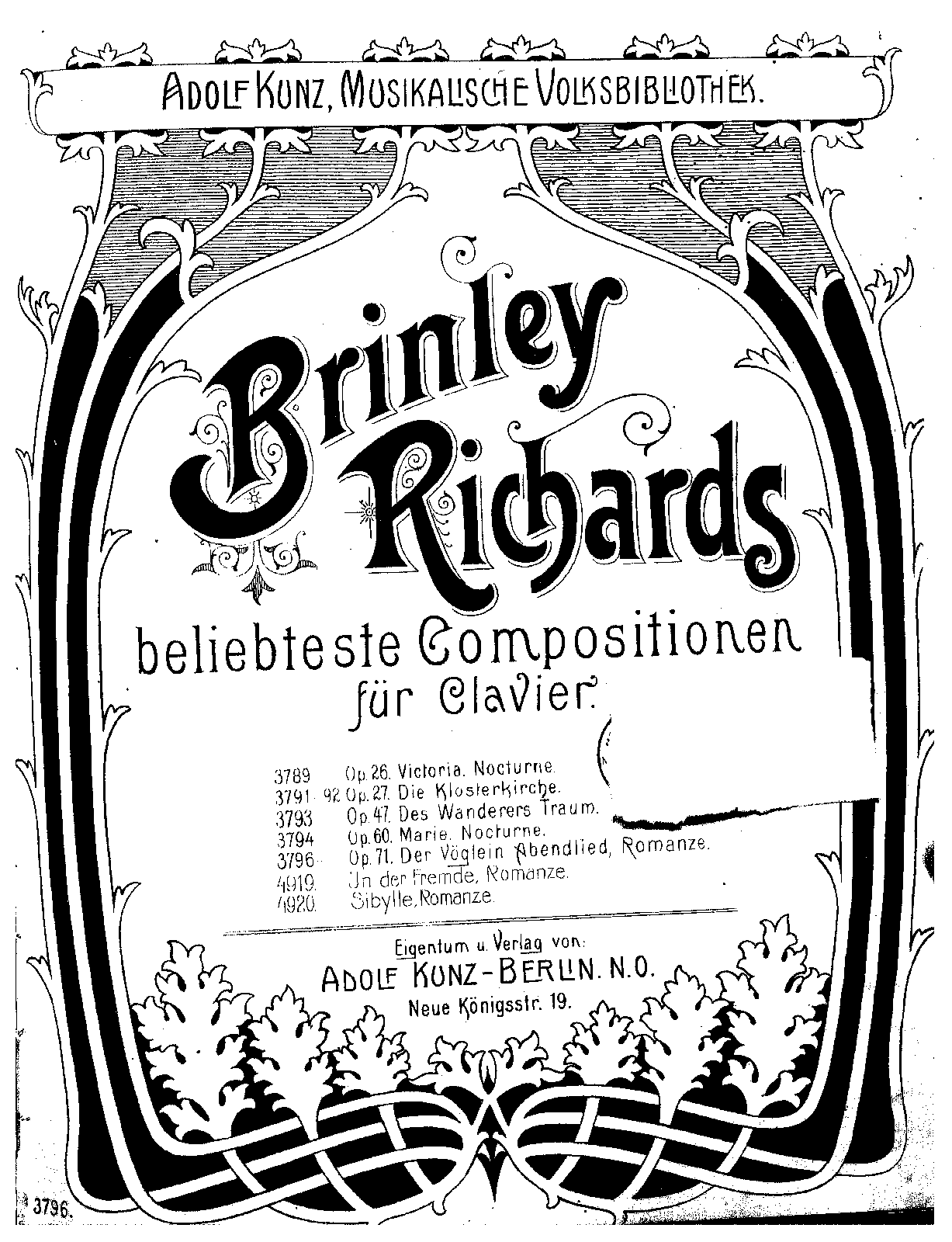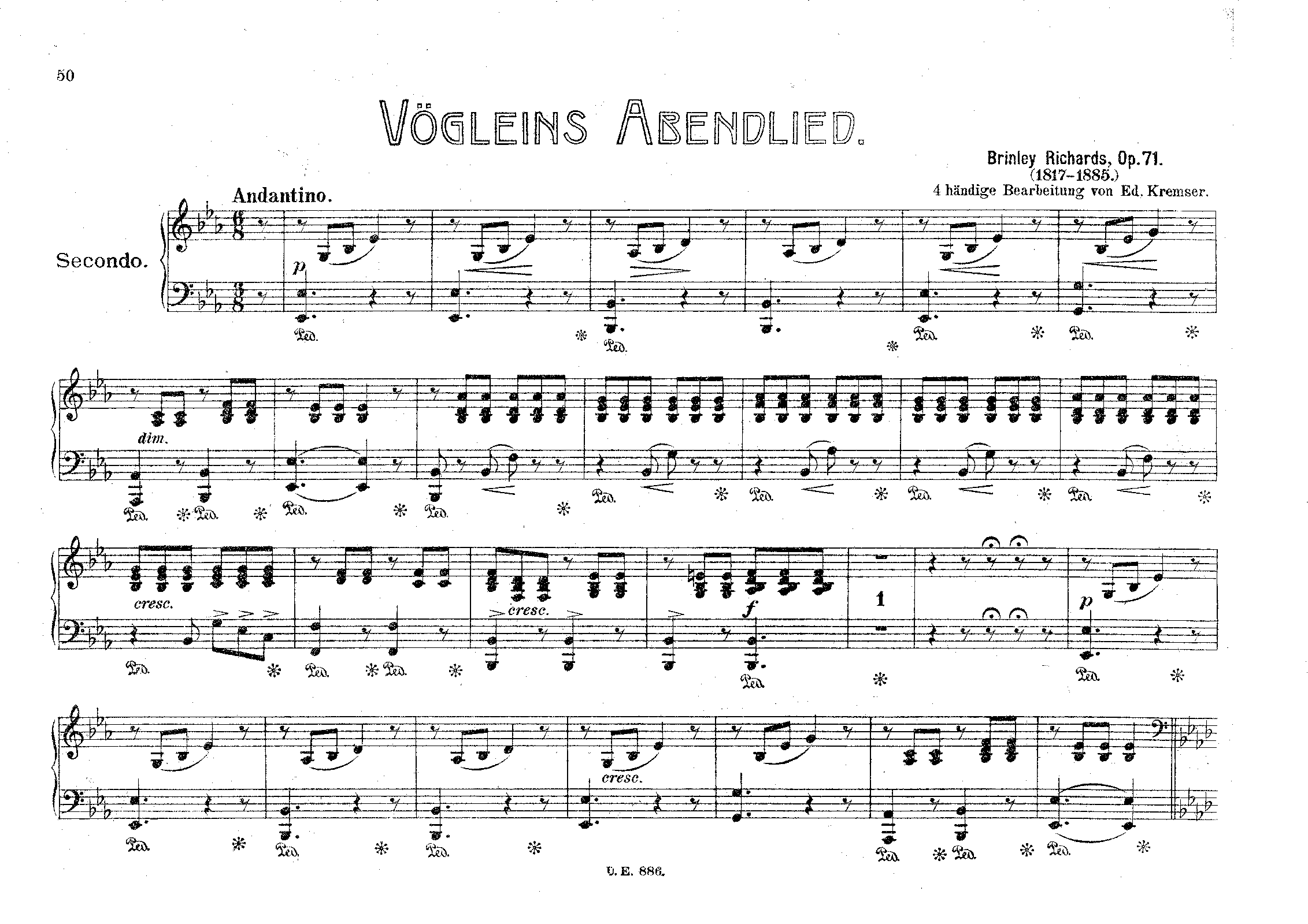 | Alternative. Title | Warblings at Eve, romance ; Birdie's Evening Song ; Am Abend ; Der Vöglein Abendlied, Romanze ; Chant du soir, célèbre romance ; brillant morceau de salon |
