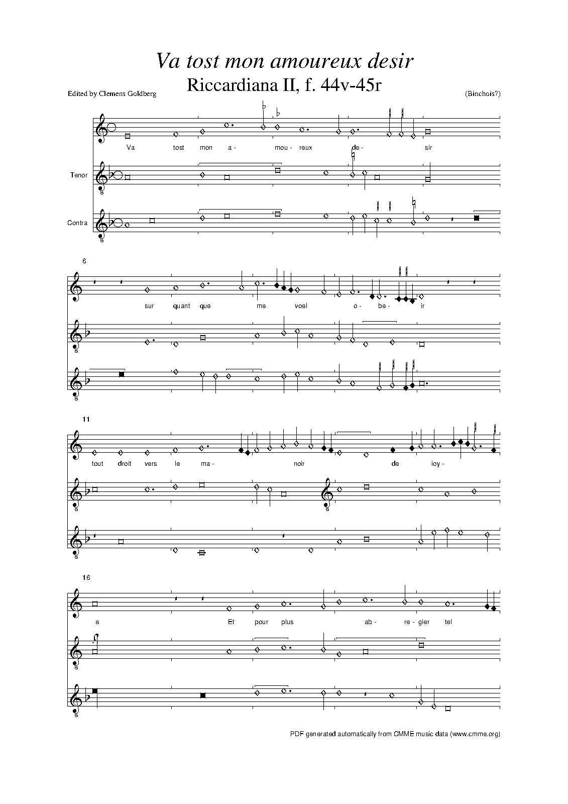 | Authorship Note Binchois's authorship of this work is doubtful. |