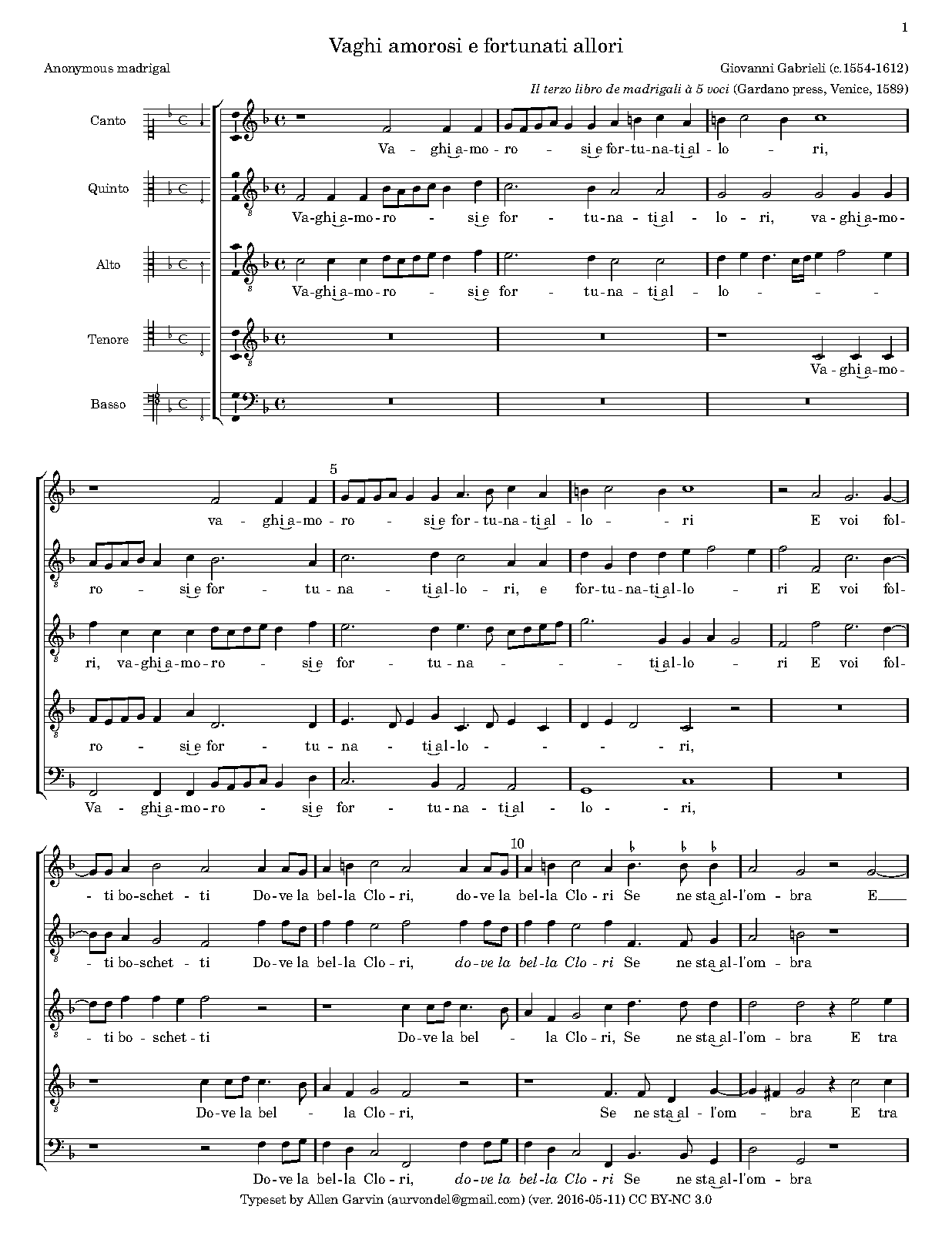 | First Publication | 1589 in Andrea Gabrieli's Il terzo libro de madrigali à 5 voci |