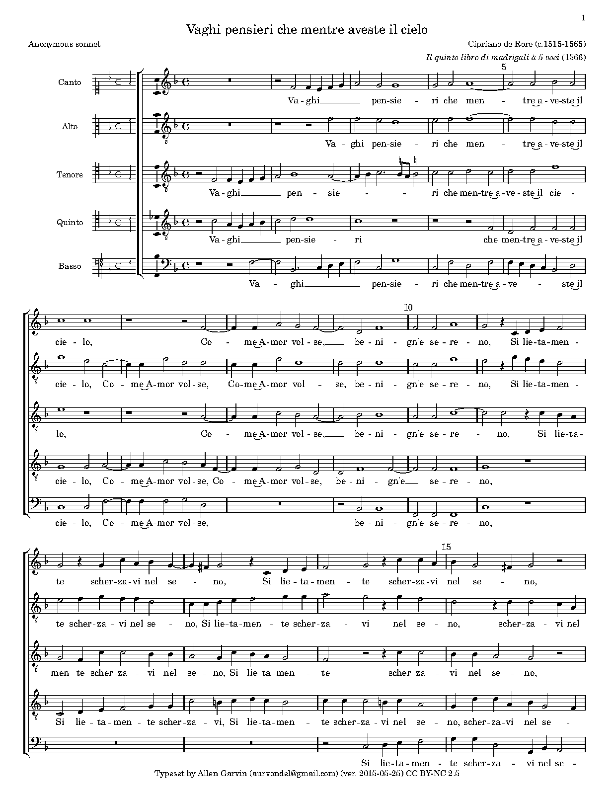 | First Publication | 1566 in Il Quinto Libro de Madrigali a 5 voci (Rore, Cipriano de) (No.4) |