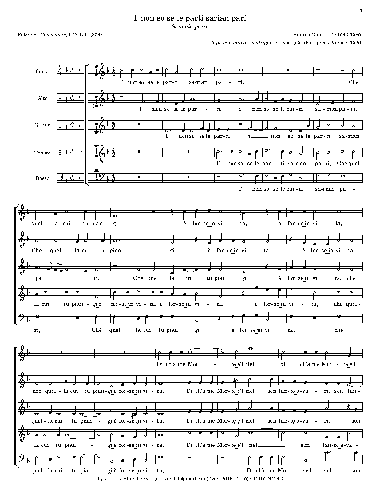 1566 in Il primo libro de madrigali à 5 voci (Venice: Gardano press)