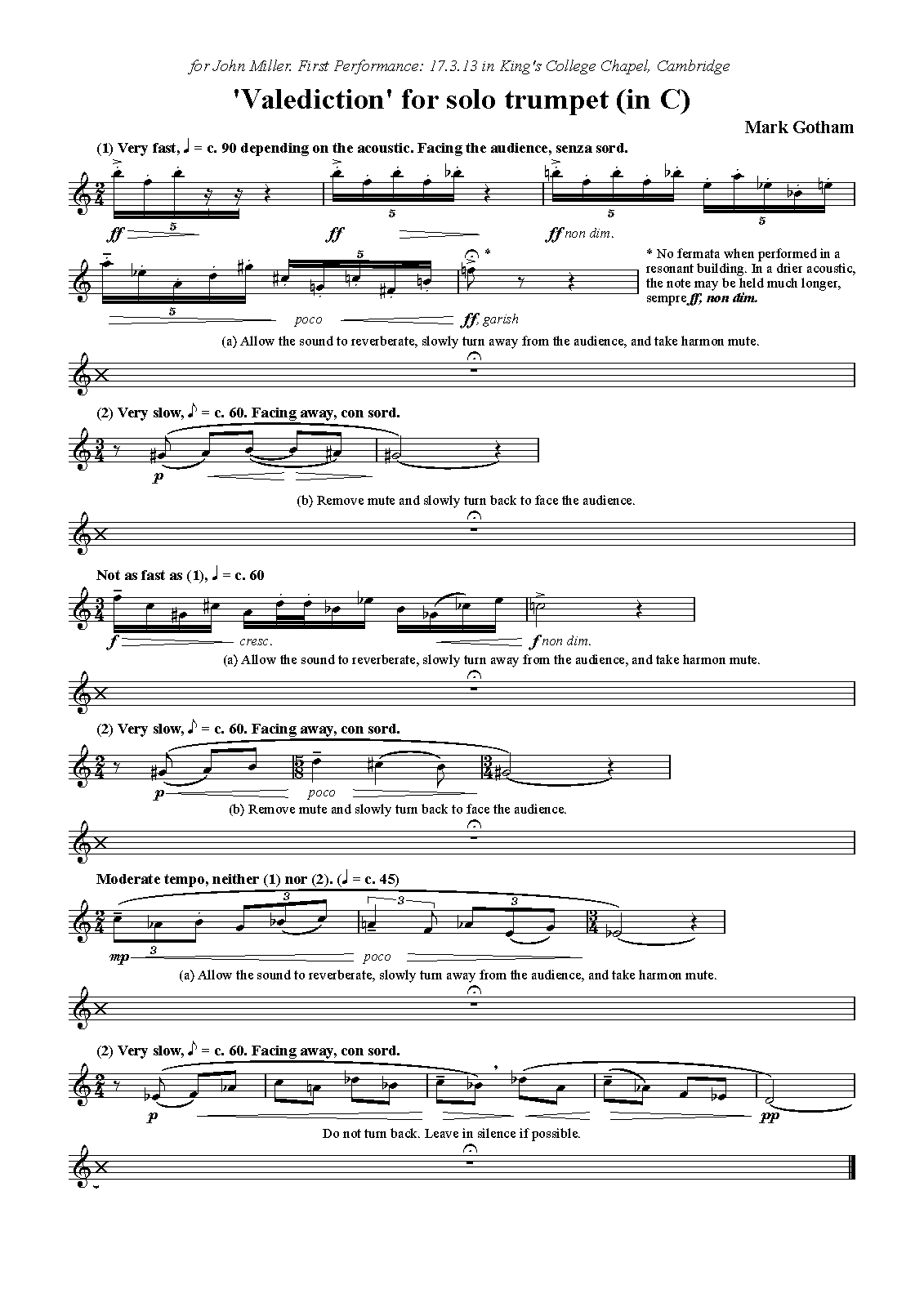 'Valediction' for solo trumpet (in C)