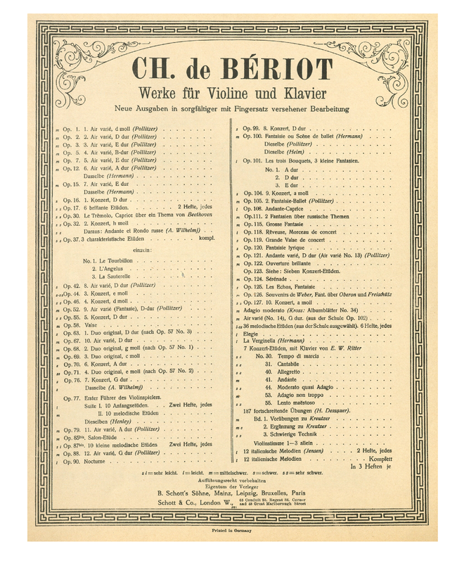 | Extra Information | The Op.58 trio was published in 1853 by Ricordi, so is in fact probably actually by C-A de Bériot, not as one might possibly suspect by his son. |